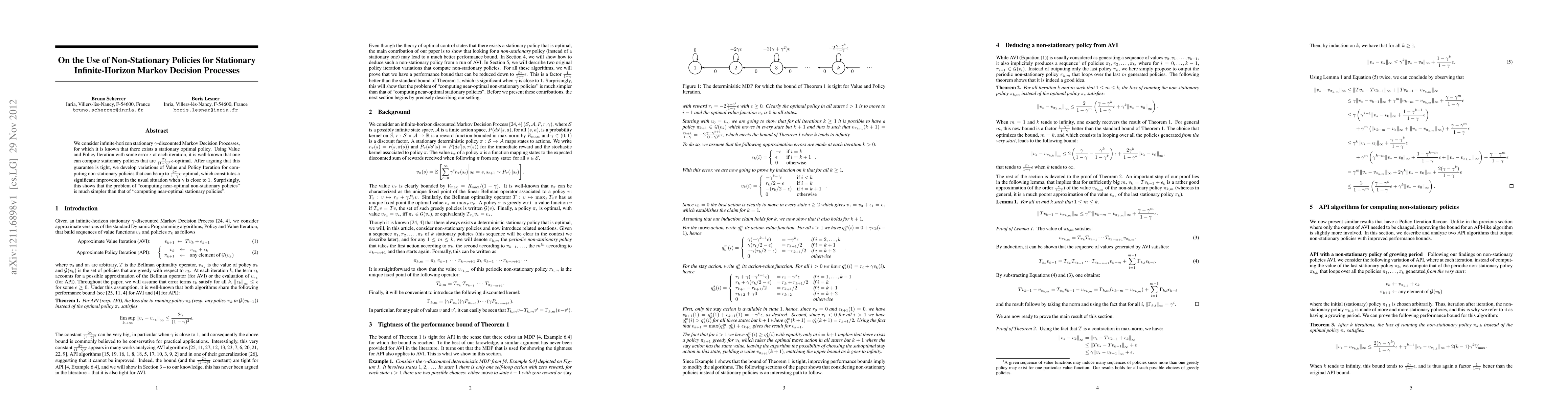 This paper explores the computation of non-stationary policies for stationary infinite-horizon Markov Decision Processes, demonstrating that non-stationary policies can achieve better optimality guarantees than stationary ones, especially when the discount factor is close to 1. The developed algorithms show that non-stationary policies can be up to $\frac{2\gamma}{1-\gamma}\epsilon$-optimal, significantly improving upon the $\frac{2\gamma}{(1-\gamma)^2}\epsilon$-optimality of stationary policies.