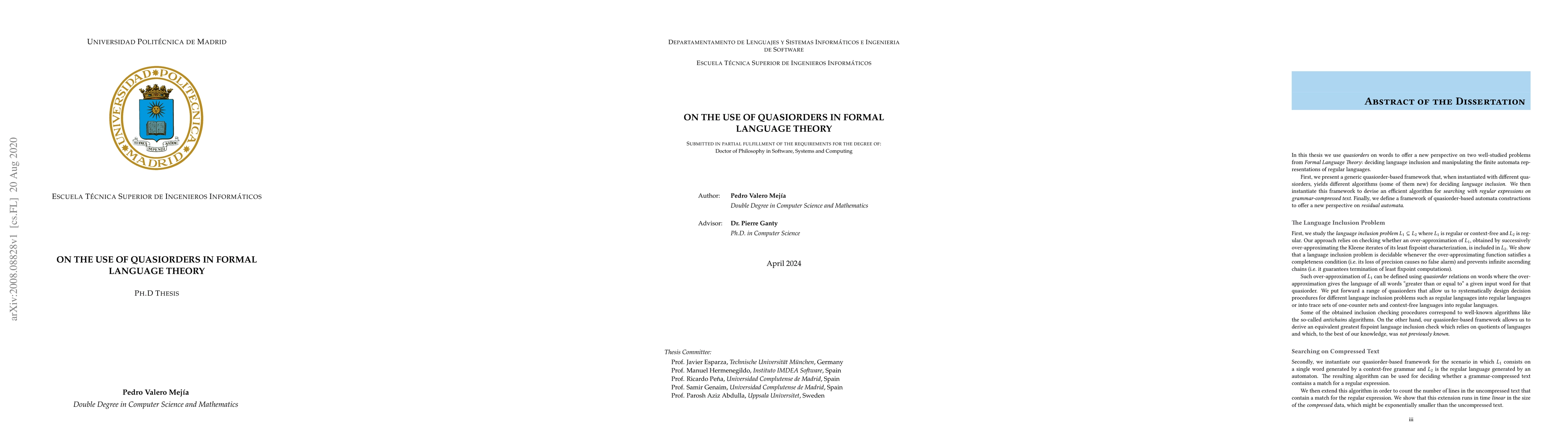 In this thesis we use quasiorders on words to offer a new perspective on two well-studied problems from Formal Language Theory: deciding language inclusion and manipulating the finite automata representations of regular languages. First, we present a generic quasiorder-based framework that, when instantiated with different quasiorders, yields different algorithms (some of them new) for deciding language inclusion. We then instantiate this framework to devise an efficient algorithm for searching with regular expressions on grammar-compressed text. Finally, we define a framework of quasiorder-based automata constructions to offer a new perspective on residual automata.