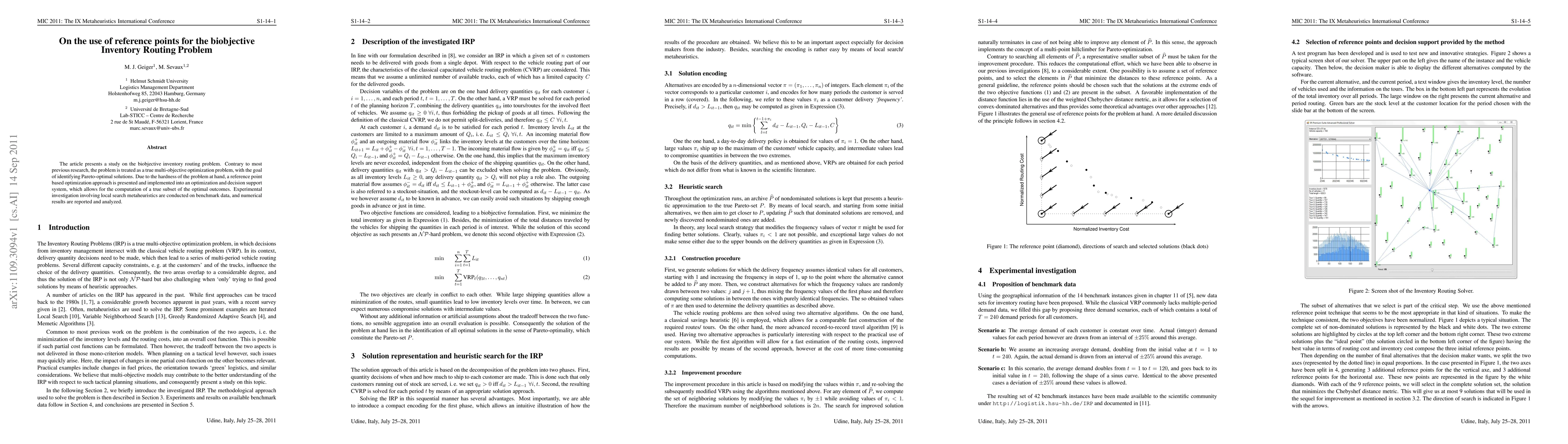 The article presents a study on the biobjective inventory routing problem. Contrary to most previous research, the problem is treated as a true multi-objective optimization problem, with the goal of identifying Pareto-optimal solutions. Due to the hardness of the problem at hand, a reference point based optimization approach is presented and implemented into an optimization and decision support system, which allows for the computation of a true subset of the optimal outcomes. Experimental investigation involving local search metaheuristics are conducted on benchmark data, and numerical results are reported and analyzed.