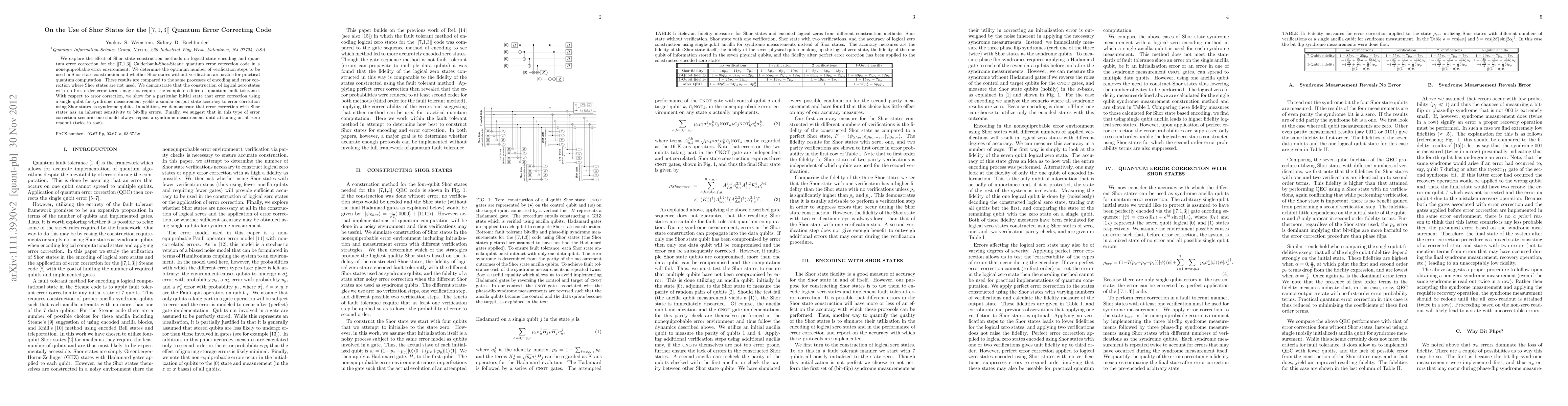 This paper investigates the use of Shor states in the construction of the [[7,1,3]] quantum error-correcting code, finding that single qubit syndrome measurement can be as effective as Shor states for error correction, though Shor states show sensitivity to bit-flip errors. The study recommends repeating syndrome measurements to ensure accuracy.