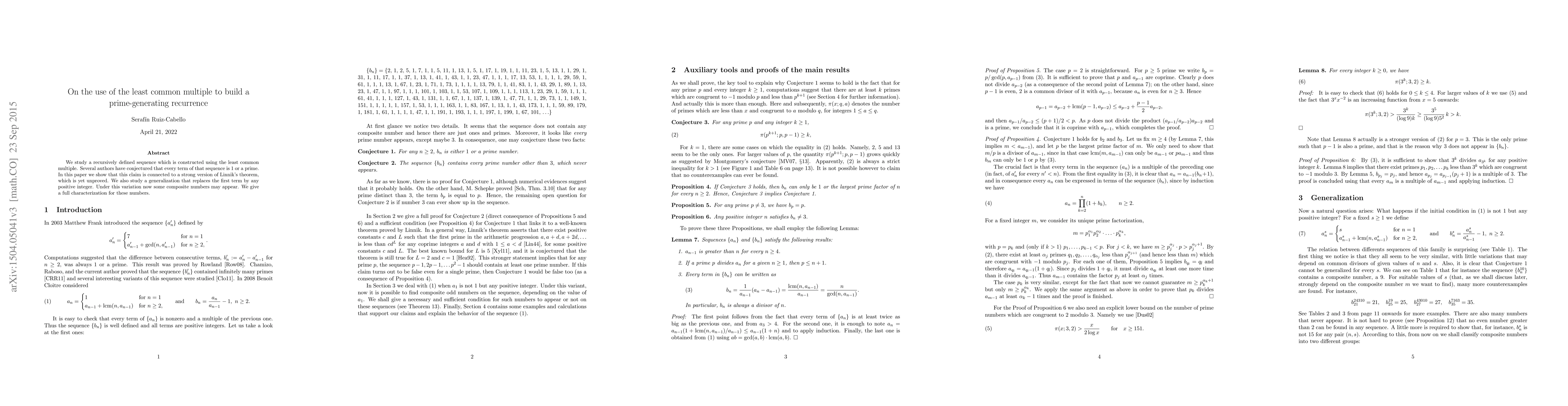 A study examines a sequence constructed using the least common multiple, connecting it to Linnik's Theorem and finding that composite numbers may appear depending on the initial term.