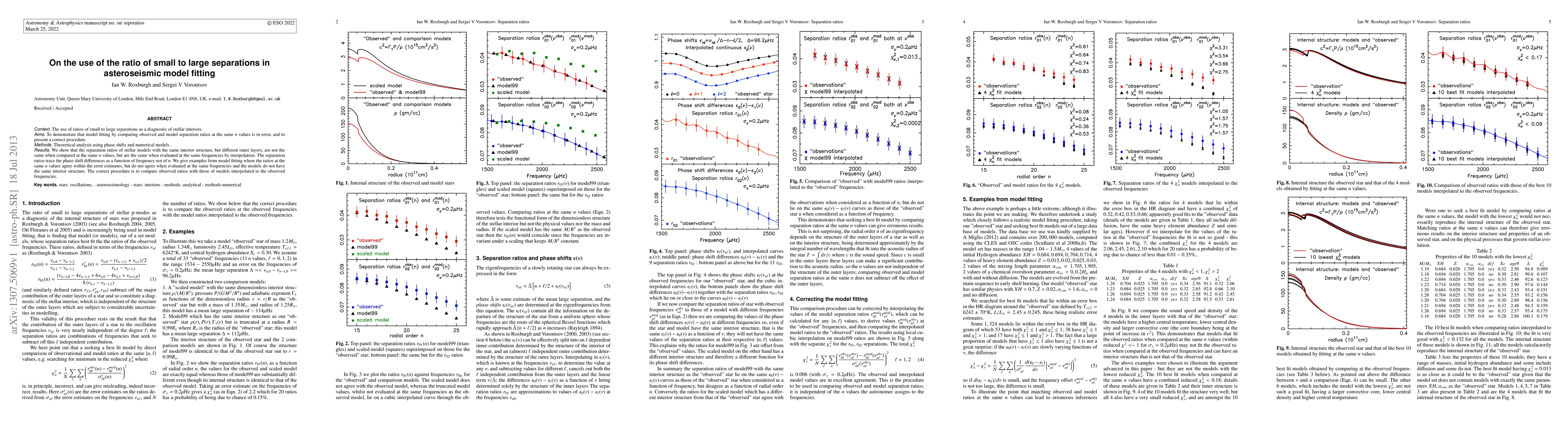 Context. The use of ratios of small to large separations as a diagnostic of stellar interiors. Aims. To demonstrate that model fitting by comparing observed and model separation ratios at the same n values is in error, and to present a correct procedure. Methods. Theoretical analysis using phase shifts and numerical models. Results. We show that the separation ratios of stellar models with the same interior structure, but different outer layers, are not the same when compared at the same n values, but are the same when evaluated at the same frequencies by interpolation. The separation ratios trace the phase shift differences as a function of frequency not of n. We give examples from model fitting where the ratios at the same n values agree within the error estimates, but do not agree when evaluated at the same frequencies and the models do not have the same interior structure. The correct procedure is to compare observed ratios with those of models interpolated to the observed frequencies.