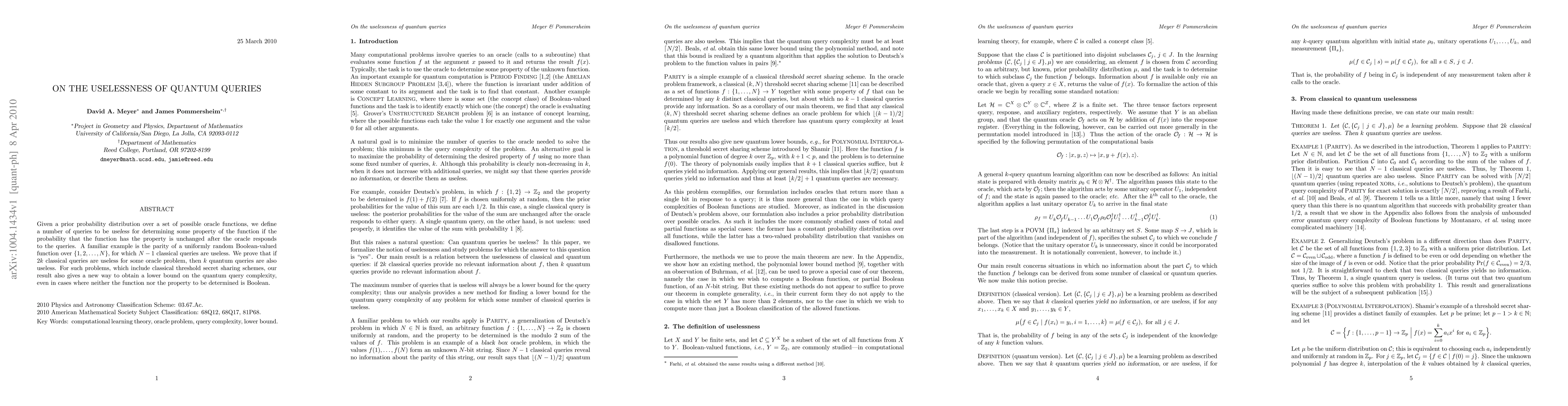 Given a prior probability distribution over a set of possible oracle functions, we define a number of queries to be useless for determining some property of the function if the probability that the function has the property is unchanged after the oracle responds to the queries. A familiar example is the parity of a uniformly random Boolean-valued function over $\{1,2,...,N\}$, for which $N-1$ classical queries are useless. We prove that if $2k$ classical queries are useless for some oracle problem, then $k$ quantum queries are also useless. For such problems, which include classical threshold secret sharing schemes, our result also gives a new way to obtain a lower bound on the quantum query complexity, even in cases where neither the function nor the property to be determined is Boolean.