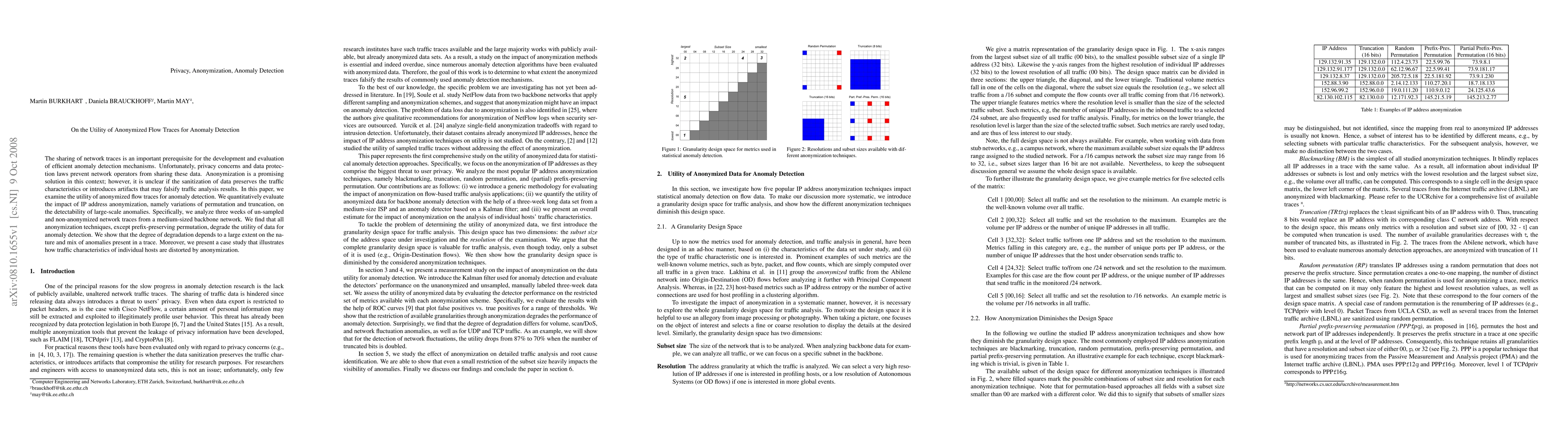 The sharing of network traces is an important prerequisite for the development and evaluation of efficient anomaly detection mechanisms. Unfortunately, privacy concerns and data protection laws prevent network operators from sharing these data. Anonymization is a promising solution in this context; however, it is unclear if the sanitization of data preserves the traffic characteristics or introduces artifacts that may falsify traffic analysis results. In this paper, we examine the utility of anonymized flow traces for anomaly detection. We quantitatively evaluate the impact of IP address anonymization, namely variations of permutation and truncation, on the detectability of large-scale anomalies. Specifically, we analyze three weeks of un-sampled and non-anonymized network traces from a medium-sized backbone network. We find that all anonymization techniques, except prefix-preserving permutation, degrade the utility of data for anomaly detection. We show that the degree of degradation depends to a large extent on the nature and mix of anomalies present in a trace. Moreover, we present a case study that illustrates how traffic characteristics of individual hosts are distorted by anonymization.