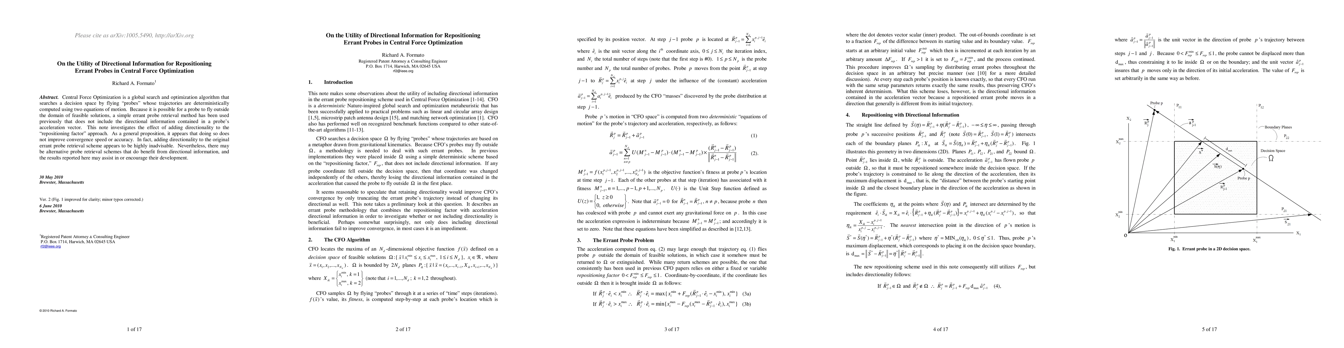 Central Force Optimization is a global search and optimization algorithm that searches a decision space by flying "probes" whose trajectories are deterministically computed using two equations of motion. Because it is possible for a probe to fly outside the domain of feasible solutions, a simple errant probe retrieval method has been used previously that does not include the directional information contained in a probe's acceleration vector. This note investigates the effect of adding directionality to the "repositioning factor" approach. As a general proposition, it appears that doing so does not improve convergence speed or accuracy. In fact, adding directionality to the original errant probe retrieval scheme appears to be highly inadvisable. Nevertheless, there may be alternative probe retrieval schemes that do benefit from directional information, and the results reported here may assist in or encourage their development.