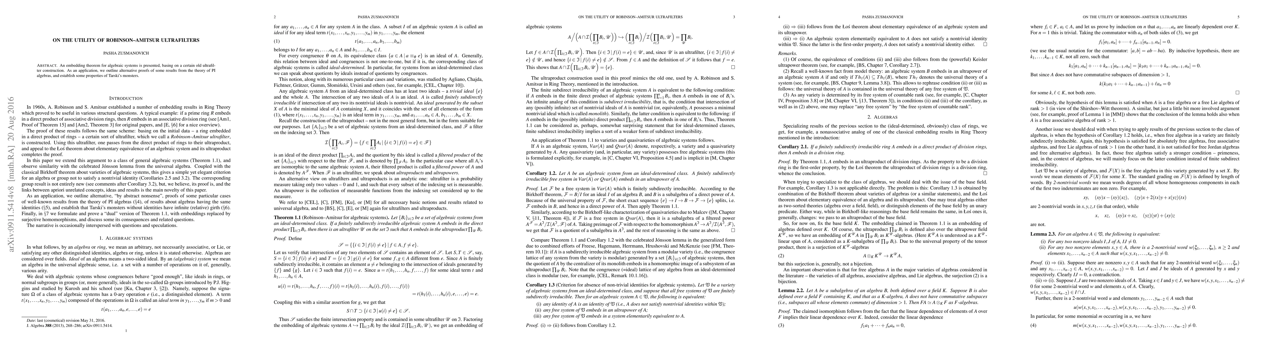 An embedding theorem for algebraic systems is presented, basing on a certain old ultrafilter construction. As an application, we outline alternative proofs of some results from the theory of PI algebras, and establish some properties of Tarski's monsters.
