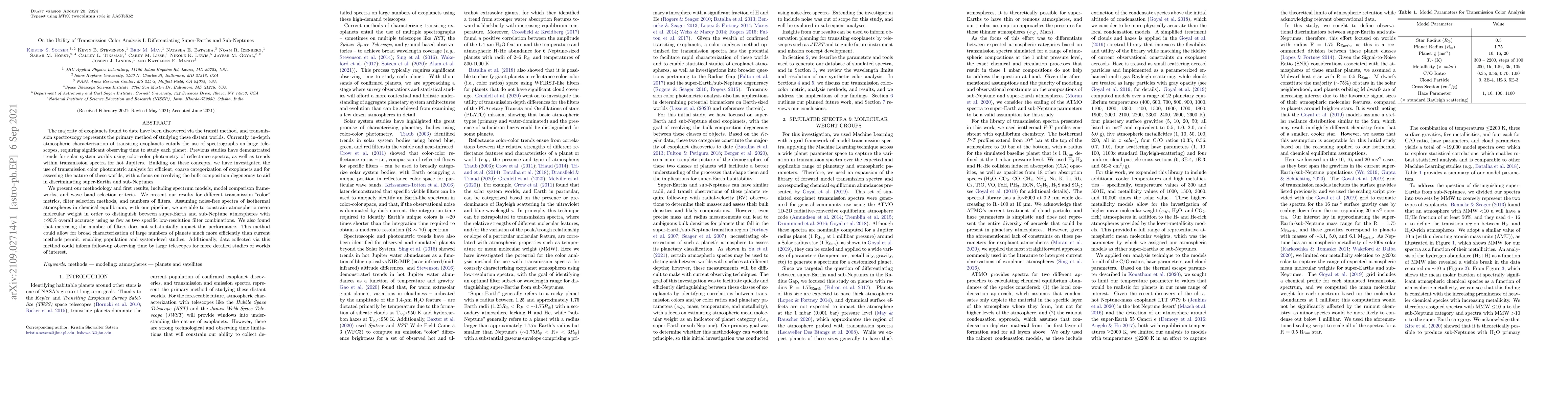 The majority of exoplanets found to date have been discovered via the transit method, and transmission spectroscopy represents the primary method of studying these distant worlds. Currently, in-depth atmospheric characterization of transiting exoplanets entails the use of spectrographs on large telescopes, requiring significant observing time to study each planet. Previous studies have demonstrated trends for solar system worlds using color-color photometry of reflectance spectra, as well as trends within transmission spectra for hot Jupiters. Building on these concepts, we have investigated the use of transmission color photometric analysis for efficient, coarse categorization of exoplanets and for assessing the nature of these worlds, with a focus on resolving the bulk composition degeneracy to aid in discriminating super-Earths and sub-Neptunes. We present our methodology and first results, including spectrum models, model comparison frameworks, and wave band selection criteria. We present our results for different transmission "color" metrics, filter selection methods, and numbers of filters. Assuming noise-free spectra of isothermal atmospheres in chemical equilibrium, with our pipeline, we are able to constrain atmospheric mean molecular weight in order to distinguish between super-Earth and sub-Neptune atmospheres with >90$\%$ overall accuracy using as few as two specific low-resolution filter combinations. We also found that increasing the number of filters does not substantially impact this performance. This method could allow for broad characterization of large numbers of planets much more efficiently than current methods permit, enabling population and system-level studies. Additionally, data collected via this method could inform follow-up observing time by large telescopes for more detailed studies of worlds of interest.