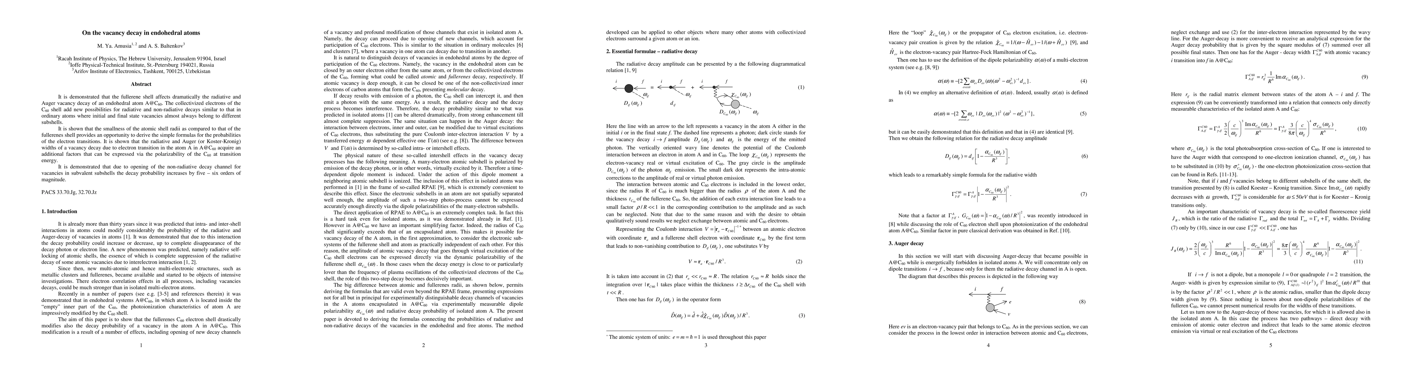 The research used a combination of theoretical models and experimental techniques to study the vacancy decay in endohedral atoms.