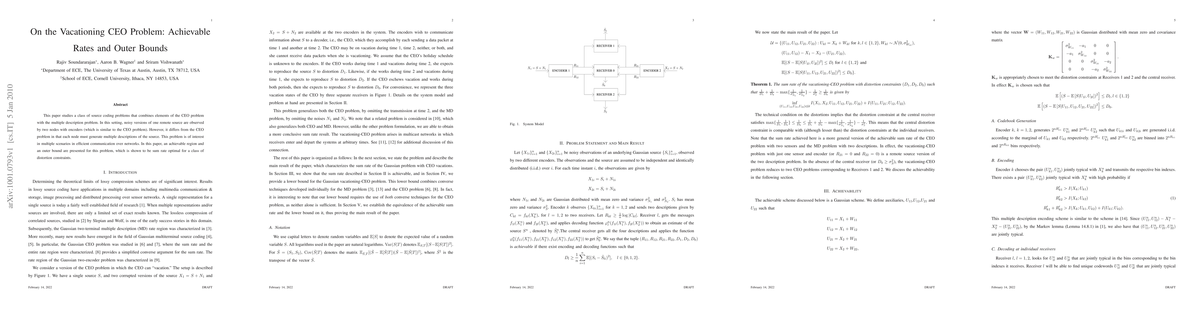 This paper studies a class of source coding problems that combines elements of the CEO problem with the multiple description problem. In this setting, noisy versions of one remote source are observed by two nodes with encoders (which is similar to the CEO problem). However, it differs from the CEO problem in that each node must generate multiple descriptions of the source. This problem is of interest in multiple scenarios in efficient communication over networks. In this paper, an achievable region and an outer bound are presented for this problem, which is shown to be sum rate optimal for a class of distortion constraints.