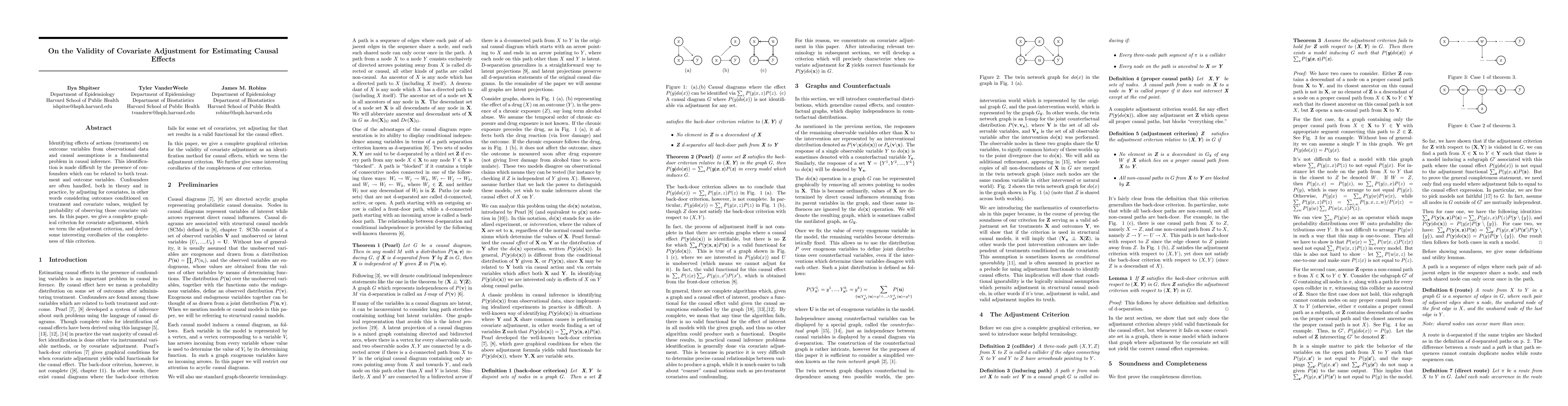 This paper presents a graphical criterion for determining the validity of covariate adjustment for estimating causal effects in observational data, addressing the challenges posed by confounders. It provides a comprehensive adjustment criterion and explores its implications for causal inference.