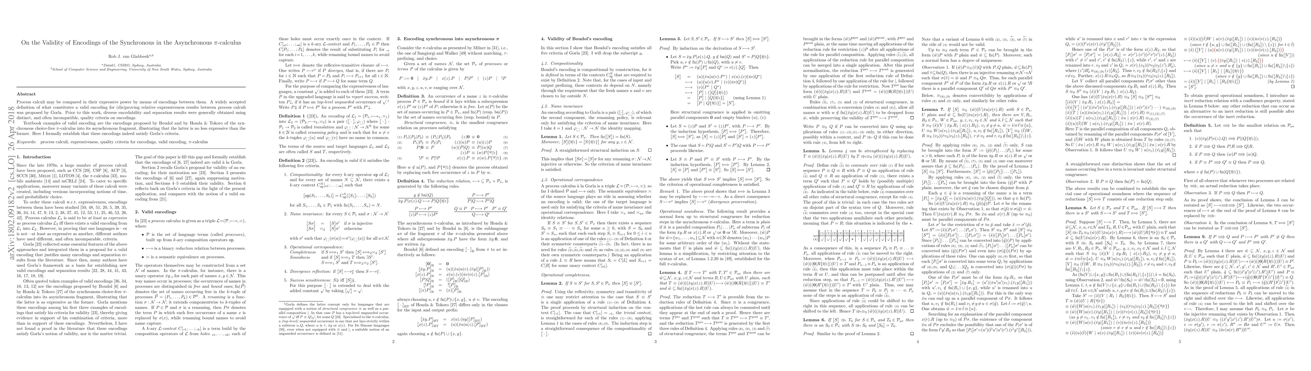 Process calculi may be compared in their expressive power by means of encodings between them. A widely accepted definition of what constitutes a valid encoding for (dis)proving relative expressiveness results between process calculi was proposed by Gorla. Prior to this work, diverse encodability and separation results were generally obtained using distinct, and often incompatible, quality criteria on encodings. Textbook examples of valid encoding are the encodings proposed by Boudol and by Honda & Tokoro of the synchronous choice-free $\pi$-calculus into its asynchronous fragment, illustrating that the latter is no less expressive than the former. Here I formally establish that these encodings indeed satisfy Gorla's criteria.