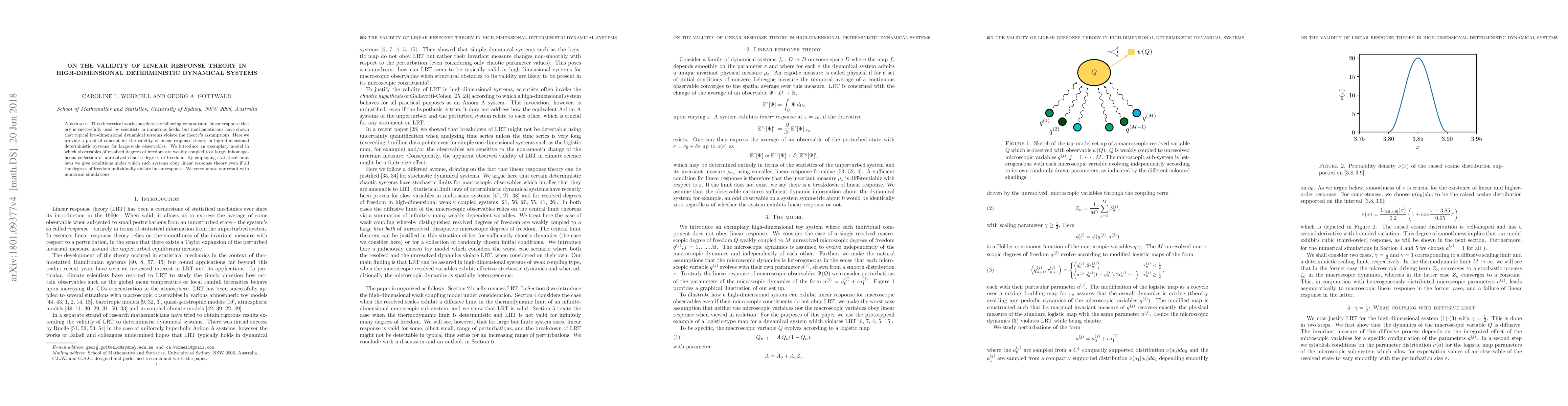 This paper proves the validity of linear response theory in high-dimensional deterministic systems, demonstrating that large-scale observables can adhere to the theory despite individual low-dimensional components violating its assumptions. Numerical simulations support the theoretical findings.