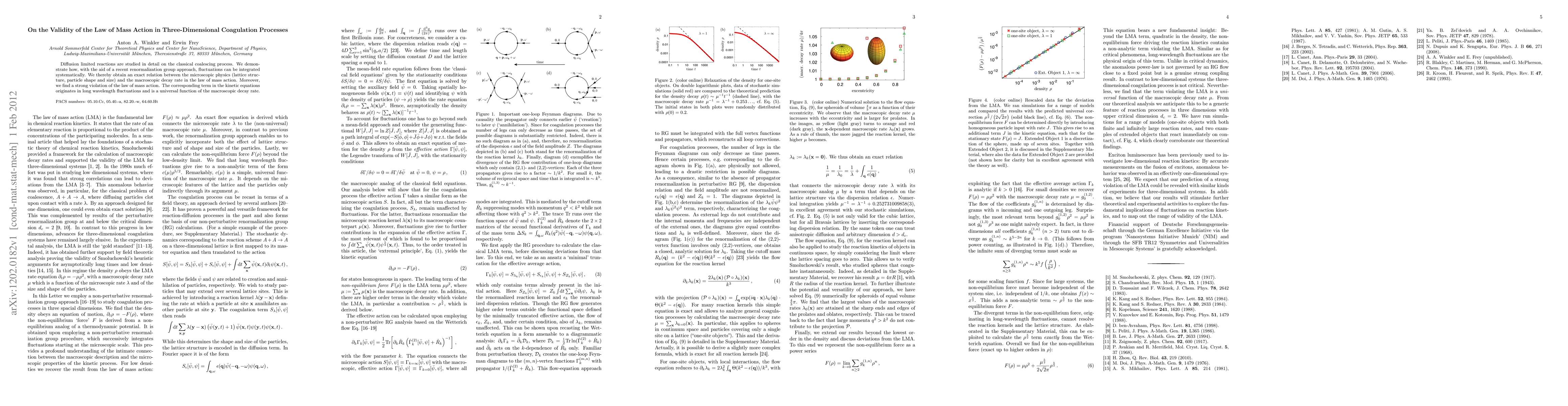 Researchers used a new method to study diffusion-limited reactions in three-dimensional coagulation processes, finding a strong violation of the law of mass action and an exact relation between microscopic physics and macroscopic decay rates.