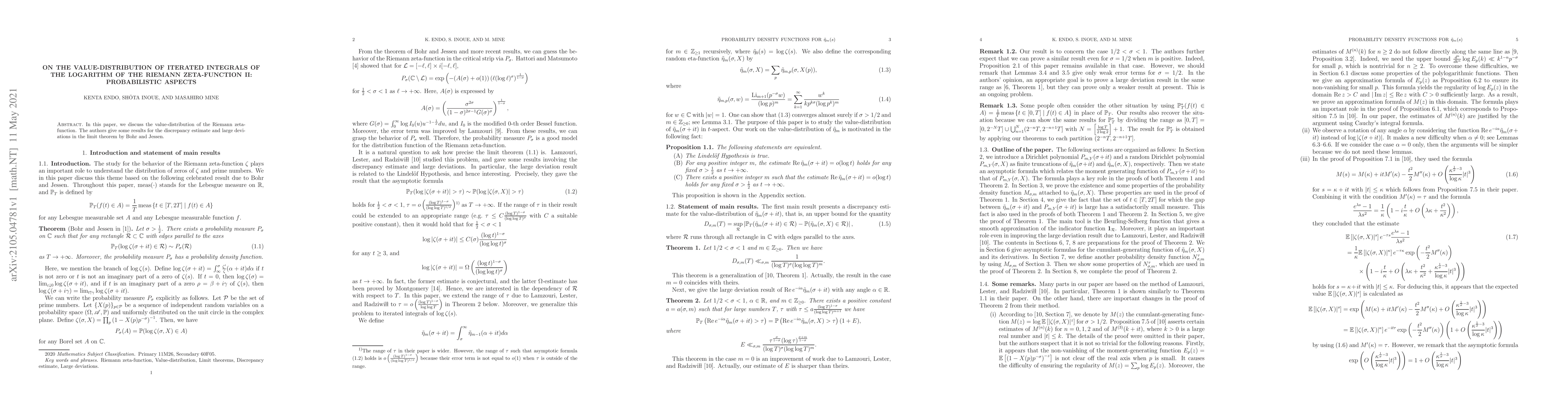 This paper explores the value-distribution of iterated integrals of the logarithm of the Riemann zeta-function, focusing on probabilistic aspects. It provides results for discrepancy estimates and large deviations in the context of Bohr and Jessen's limit theorem.