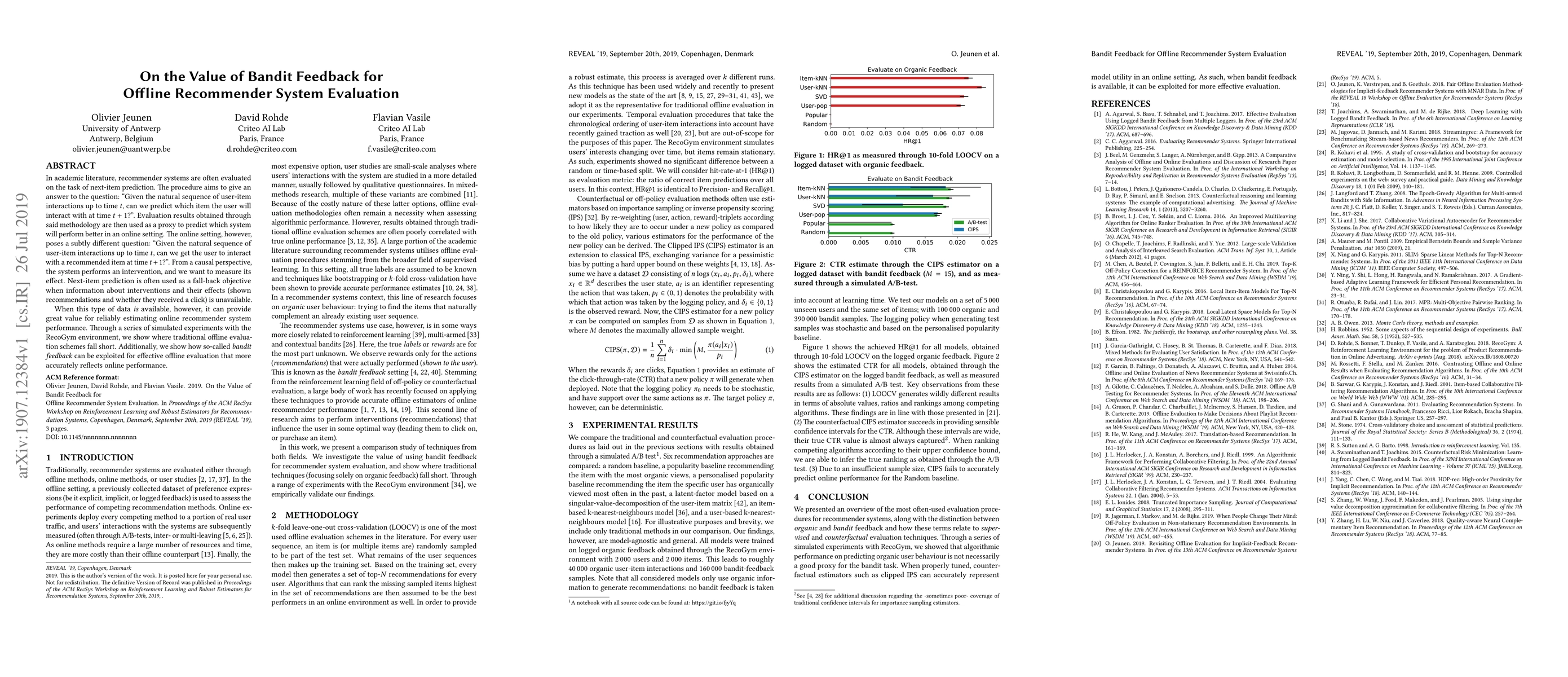 In academic literature, recommender systems are often evaluated on the task of next-item prediction. The procedure aims to give an answer to the question: "Given the natural sequence of user-item interactions up to time t, can we predict which item the user will interact with at time t+1?". Evaluation results obtained through said methodology are then used as a proxy to predict which system will perform better in an online setting. The online setting, however, poses a subtly different question: "Given the natural sequence of user-item interactions up to time t, can we get the user to interact with a recommended item at time t+1?". From a causal perspective, the system performs an intervention, and we want to measure its effect. Next-item prediction is often used as a fall-back objective when information about interventions and their effects (shown recommendations and whether they received a click) is unavailable. When this type of data is available, however, it can provide great value for reliably estimating online recommender system performance. Through a series of simulated experiments with the RecoGym environment, we show where traditional offline evaluation schemes fall short. Additionally, we show how so-called bandit feedback can be exploited for effective offline evaluation that more accurately reflects online performance.