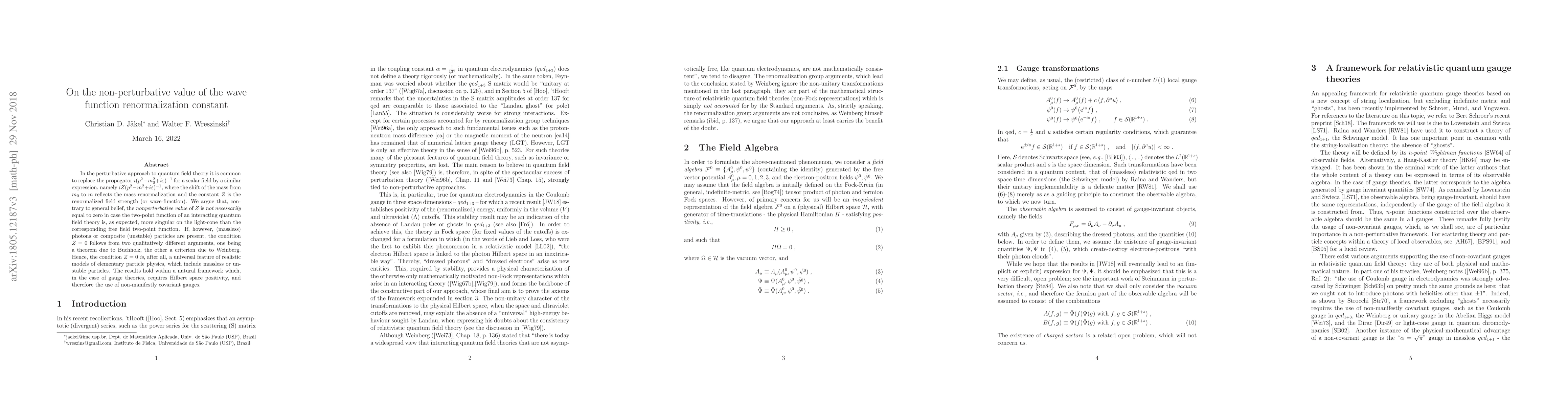 In the perturbative approach to quantum field theory it is common to replace the propagator $i (p^{2}-m_{0}^{2}+i\varepsilon )^{-1}$ for a scalar field by a similar expression, namely $iZ (p^{2}-m^{2}+i\varepsilon )^{-1}$, where the shift of the mass from $m_{0}$ to $m$ reflects the mass renormalization and the constant~$Z$ is the renormalized field strength (or wave-function). We argue that, contrary to general belief, the non-perturbative value of~$Z$ is not necessarily equal to zero in case the two-point function of an interacting quantum field theory is, as expected, more singular on the light-cone than the corresponding free field two-point function. If, however, (massless) photons or composite (unstable) particles are present, the condition $Z=0$ follows from two qualitatively different arguments, one being a theorem due to Buchholz, the other a criterion due to Weinberg. Hence, the condition $Z=0$ is, after all, a universal feature of realistic models of elementary particle physics, which include massless or unstable particles. The results hold within a natural framework which, in the case of gauge theories, requires Hilbert space positivity, and therefore the use of non-manifestly covariant gauges.