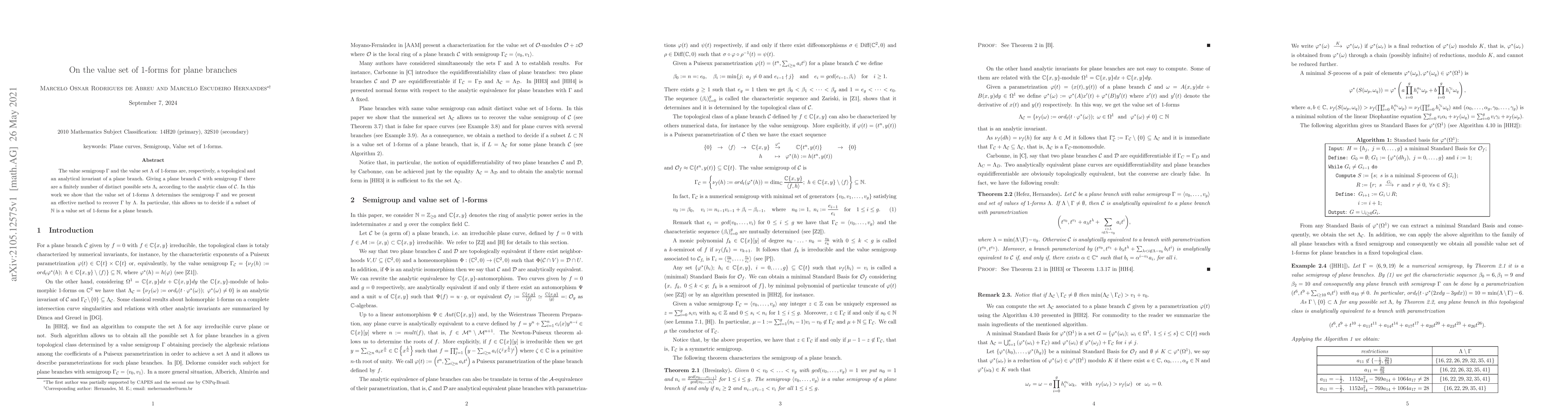 The value semigroup $\Gamma$ and the value set $\Lambda$ of $1$-forms are, respectively, a topological and an analytical invariant of a plane branch. Giving a plane branch $\mathcal{C}$ with semigroup $\Gamma$ there are a finitely number of distinct possible sets $\Lambda_i$ according to the analytic class of $\mathcal{C}$. In this work we show that the value set of $1$-forms $\Lambda$ determines the semigroup $\Gamma$ and we present an effective method to recover $\Gamma$ by $\Lambda$. In particular, this allows us to decide if a subset of $\mathbb{N}$ is a value set of $1$-forms for a plane branch.