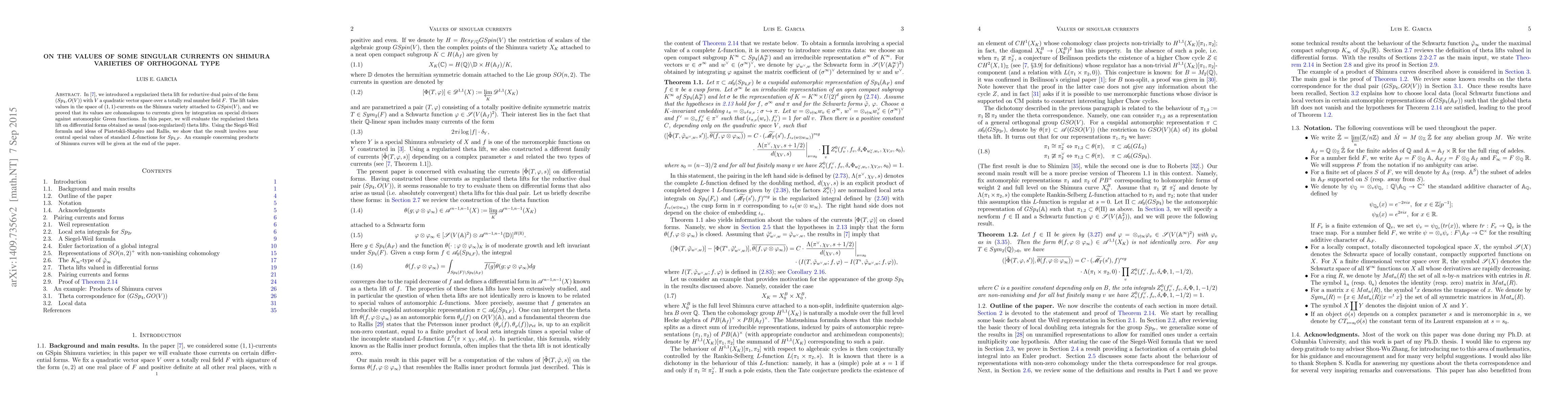 In a previous paper (arxiv:1409.7353), we introduced a regularized theta lift for reductive dual pairs of the form $(Sp_4,O(V))$ with $V$ a quadratic vector space over a totally real number field $F$. The lift takes values in the space of $(1,1)$-currents on the Shimura variety attached to $GSpin(V)$, and we proved that its values are cohomologous to currents given by integration on special divisors against automorphic Green functions. In this paper, we will evaluate the regularized theta lift on differential forms obtained as usual (non-regularized) theta lifts. Using the Siegel-Weil formula and ideas of Piatetskii-Shapiro and Rallis, we show that the result involves near central special values of standard $L$-functions for $Sp_{4,F}$. An example concerning products of Shimura curves will be given at the end of the paper.