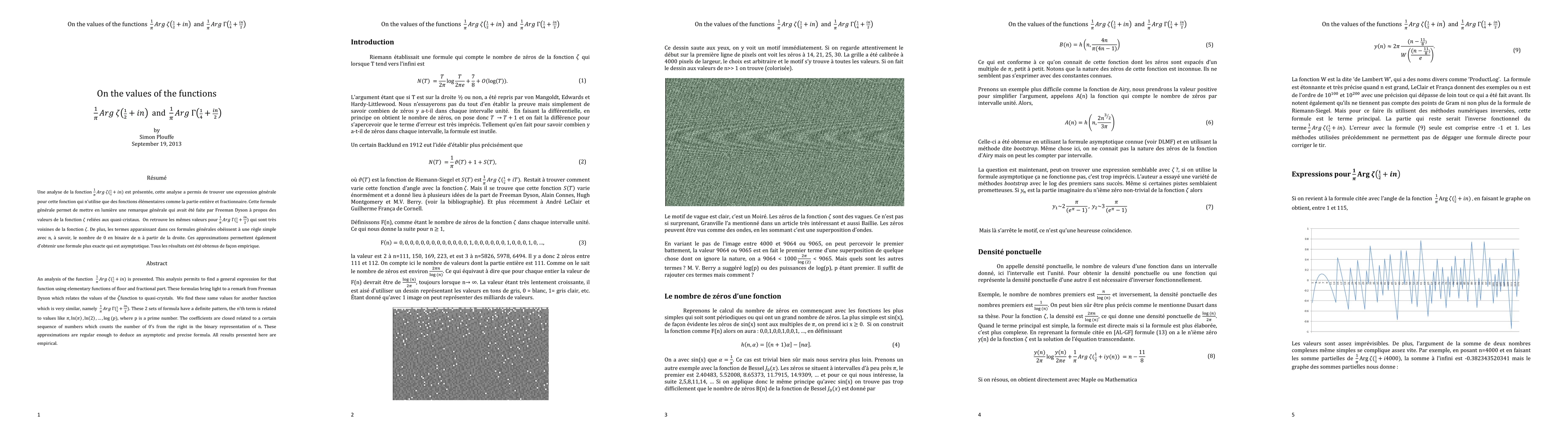 Summary: This paper analyzes the zeta and gamma functions, employing elementary functions. It derives general formulas for the angle of zeta(1/2 + i*n) and the gamma function, providing new insights into their properties.