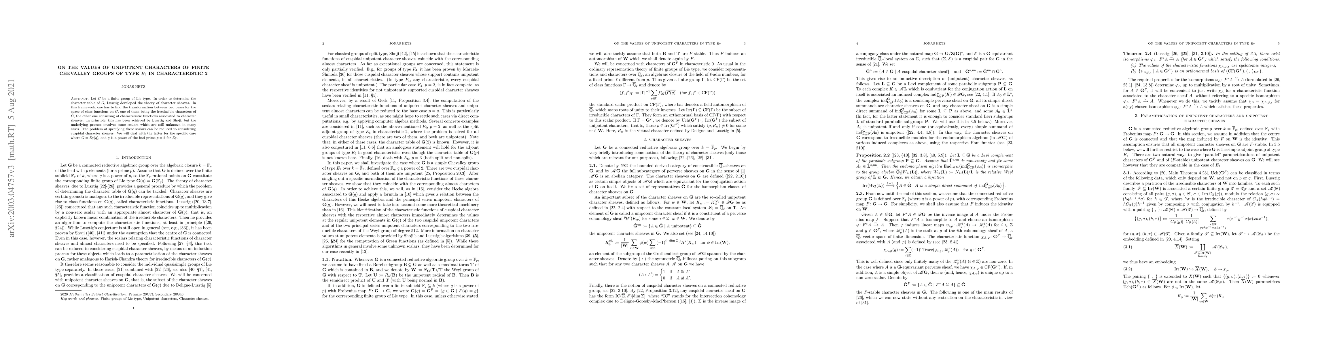 This paper investigates the values of unipotent characters for the finite Chevalley group $E_7$ in characteristic 2, focusing on determining the transformation between irreducible characters and characteristic functions associated with cuspidal character sheaves, as developed by Lusztig. The study aims to resolve unknown scalars in this transformation process.