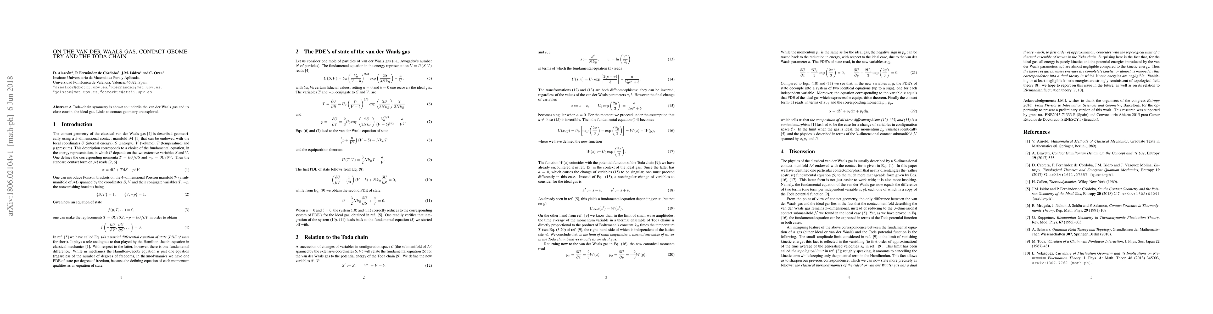 A Toda chain symmetry is shown to underlie the van der Waals gas and its close cousin, the ideal gas. Links to contact geometry are explored.