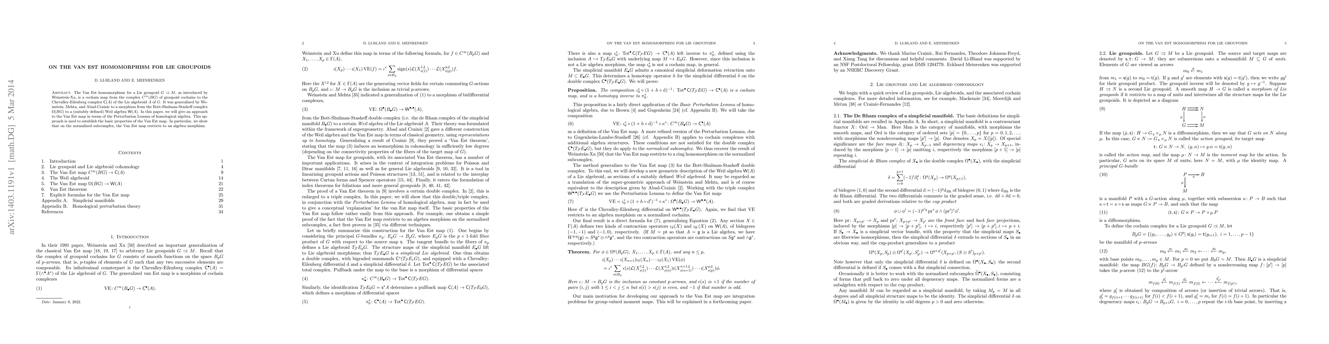 This paper explores the Van Est homomorphism for Lie groupoids, using the Perturbation Lemma to establish its fundamental properties. It demonstrates that the map restricts to an algebra morphism on the normalized subcomplex.
