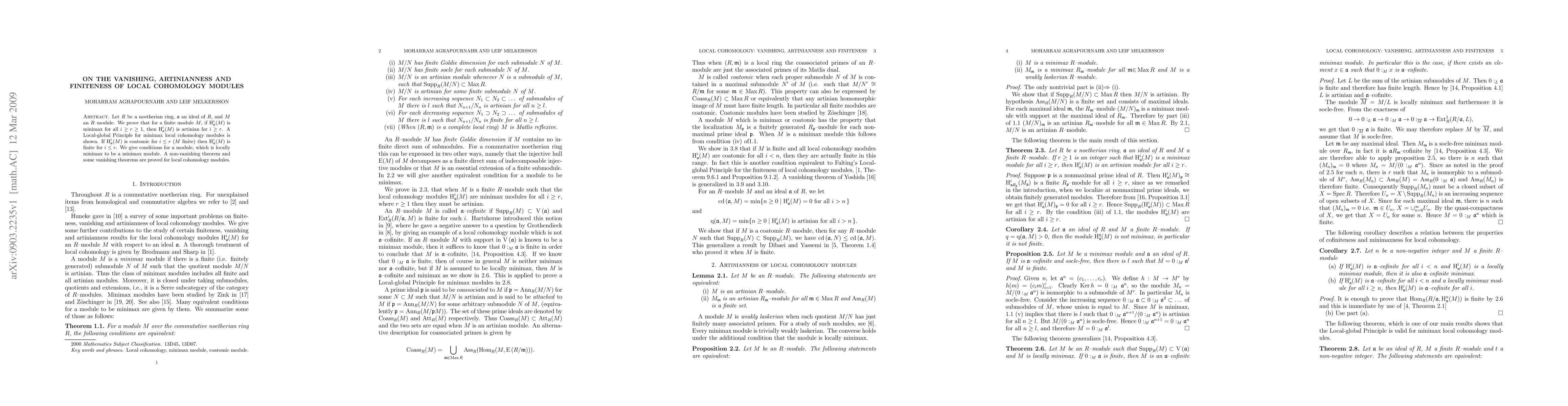 This paper investigates properties of local cohomology modules over a noetherian ring, proving that minimax local cohomology modules become artinian and finite under certain conditions. It also establishes a local-global principle and provides criteria for a locally minimax module to be minimax.
