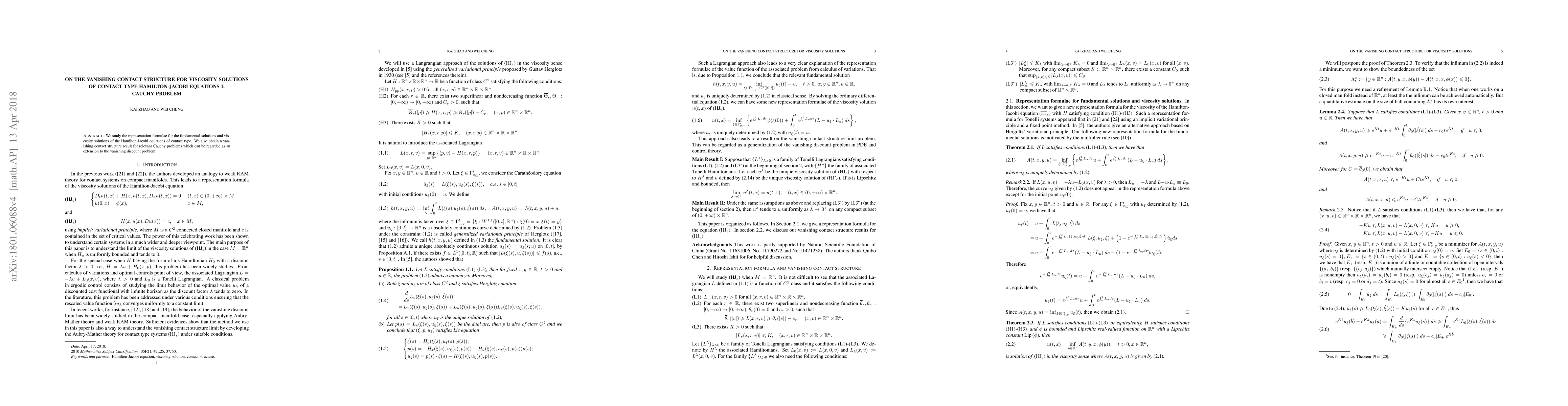 Summary: This paper investigates representation formulae for fundamental solutions and viscosity solutions of contact type Hamilton-Jacobi equations, and presents a vanishing contact structure result for associated Cauchy problems, extending the concept of vanishing discount.