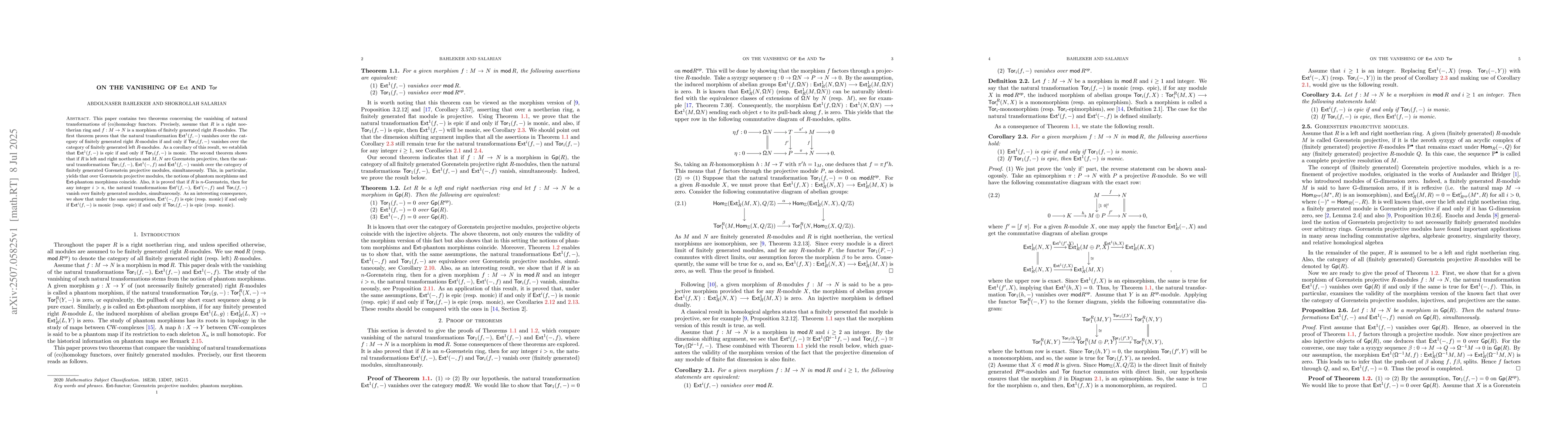 This paper contains two theorems concerning the vanishing of natural transformations of (co)homology functors. Precisely, assume that $R$ is a right noetherian ring and $f: M\rt N$ is a morphism of finitely generated right $R$-modules. The first theorem proves that the natural transformation $\Ext^1(f, -)$ vanishes over the category of finitely generated right $R$-modules if and only if $\Tor_1(f, -)$ vanishes over the category of finitely generated left $R$-modules. As a corollary of this result, we establish that $\Ext^1(f, -)$ is epic if and only if $\Tor_1(f, -)$ is monic. The second theorem shows that if $R$ is left and right noetherian and $M, N$ are Gorenstein projective, then the natural transformations $\Tor_1(f, -)$, $\Ext^1(-, f)$ and $\Ext^1(f, -)$ vanish over the category of finitely generated Gorenstein projective modules, simultaneously. This, in particular, yields that over Gorenstein projective modules, the notions of phantom morphisms and $\Ext$-phantom morphisms coincide. Also, it is proved that if $R$ is $n$-Gorenstein, then for any integer $i>n$, the natural transformations $\Ext^{i}(f, -)$, $\Ext^{i}(-, f)$ and $\Tor_{i}(f, -)$ vanish over finitely generated modules, simultaneously. As an interesting consequence, we show that under the same assumptions, $\Ext^i(-, f)$ is epic (resp. monic) if and only if $\Ext^i(f, -)$ is monic (resp. epic) if and only if $\Tor_i(f, -)$ is epic (resp. monic).