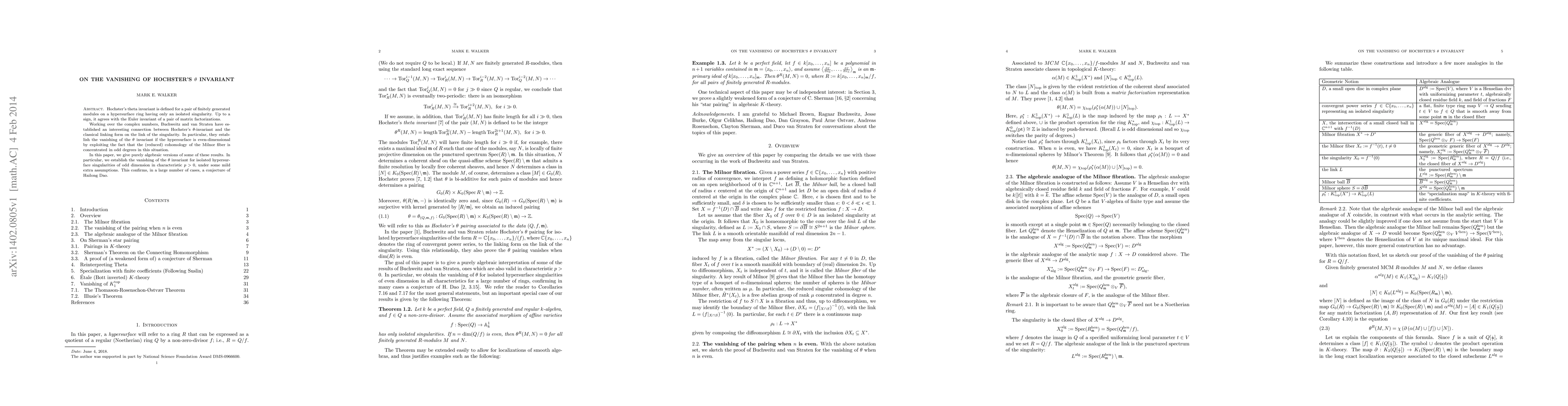 Hochster's theta invariant is defined for a pair of finitely generated modules on a hypersurface ring having only an isolated singularity. Up to a sign, it agrees with the Euler invariant of a pair of matrix factorizations. Working over the complex numbers, Buchweitz and van Straten have established an interesting connection between Hochster's theta invariant and the classical linking form on the link of the singularity. In particular, they establish the vanishing of the theta invariant if the hypersurface is even-dimensional by exploiting the fact that the (reduced) cohomology of the Milnor fiber is concentrated in odd degrees in this situation. In this paper, we give purely algebraic versions of some of these results. In particular, we establish the vanishing of the theta invariant for isolated hypersurface singularities of odd dimension in characteristic p > 0, under some mild extra assumptions. This confirms, in a large number of cases, a conjecture of Hailong Dao.