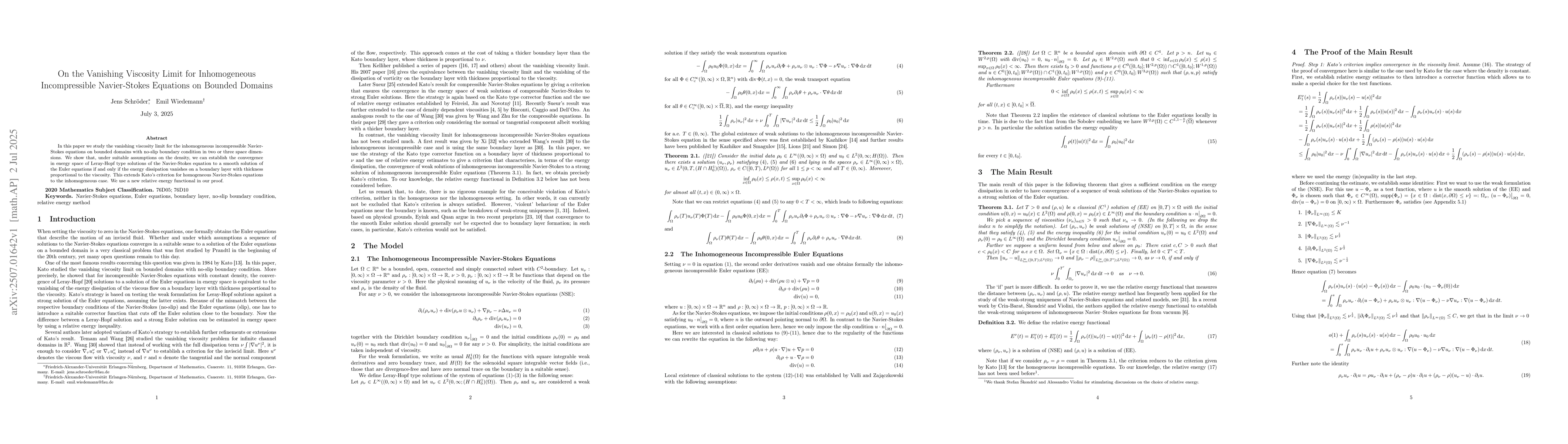 The paper employs a relative energy functional approach to study the vanishing viscosity limit for inhomogeneous incompressible Navier-Stokes equations on bounded domains with no-slip boundary conditions.