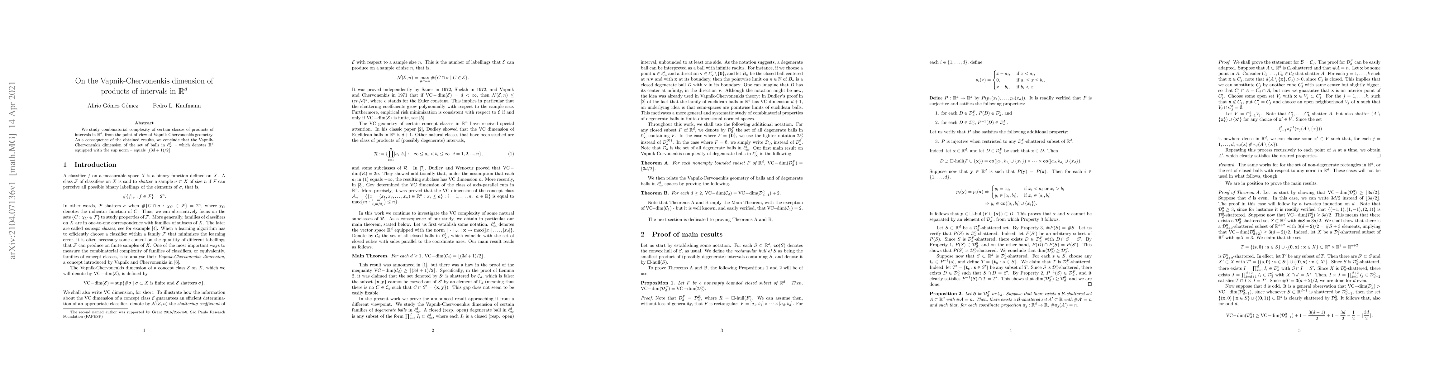 This paper investigates the combinatorial complexity of product intervals in $\mathbb{R}^d$ through the lens of Vapnik-Chervonenkis (VC) geometry, finding that the VC dimension of balls in $\ell_\infty^d$ is $\lfloor (3d+1)/2\rfloor$.