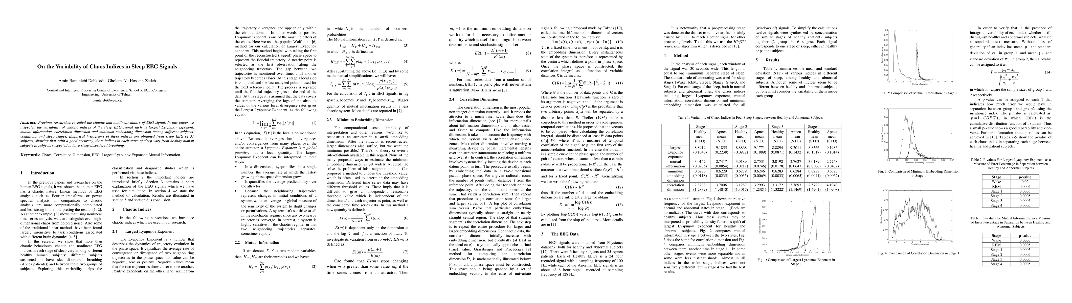 This study analyzed sleep EEG signals from 31 subjects to assess the variability of chaotic indices in different stages of sleep, finding that these measures can distinguish between healthy and sleep-disordered breathing individuals with good accuracy.