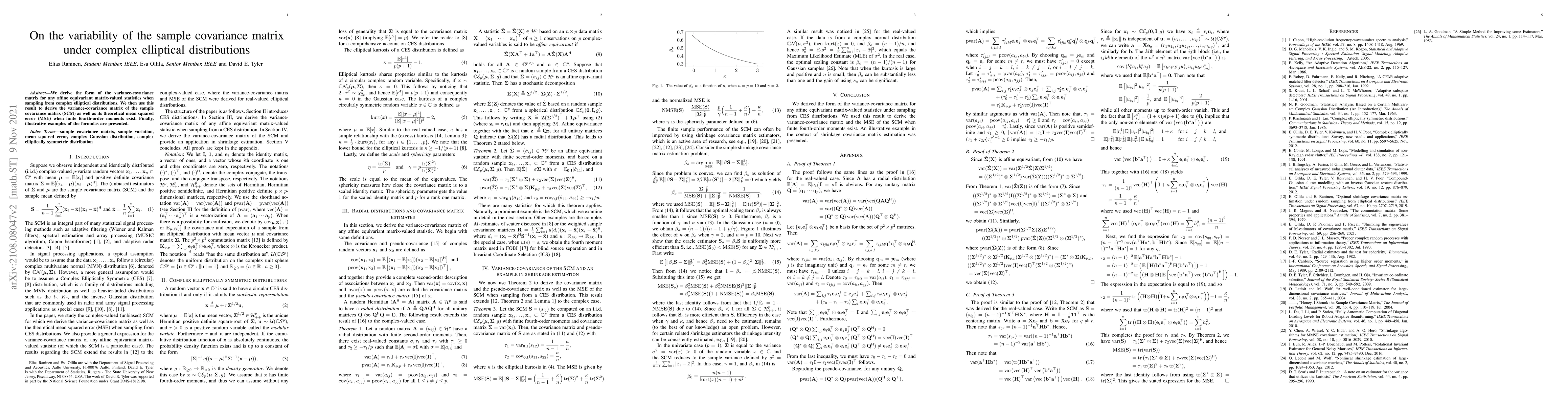We derive the form of the variance-covariance matrix for any affine equivariant matrix-valued statistics when sampling from complex elliptical distributions. We then use this result to derive the variance-covariance matrix of the sample covariance matrix (SCM) as well as its theoretical mean squared error (MSE) when finite fourth-order moments exist. Finally, illustrative examples of the formulas are presented.