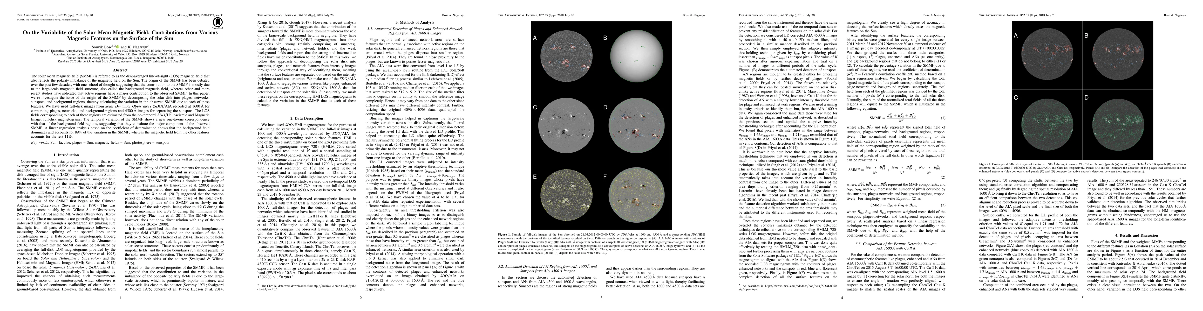 The solar mean magnetic field (SMMF) is referred to as the disc-averaged line-of-sight (LOS) magnetic field that also reflects the polarity imbalance of the magnetic field on the Sun. The origin of the SMMF has been debated over the past few decades, with one school of thought suggesting that the contribution to the SMMF is mostly due to the large scale magnetic field structure, also termed as the background magnetic field, whereas other and more recent studies have indicated that active regions have a major contribution to the observed SMMF. In this paper, we re-investigate the issue of the origin of the SMMF by decomposing the solar disk into plages, networks, sunspots and background regions, thereby calculating the variation in the observed SMMF due to each of these features. We have used full disk images from SDO/{\it AIA} recorded at 1600~\AA\, for earmarking plages, networks and background regions and 4500~\AA\, images for separating the sunspots. The LOS fields corresponding to each of these regions are estimated from the co-temporal SDO/{\it HMI} full disk magnetograms. The temporal variation of the SMMF shows a near one-to-one correspondence with that of the background field regions suggesting that they constitute the major component of the observed SMMF. A linear regression analysis based on the coefficient of determination shows that the background field dominates, and accounts for 89\% of the variation in the SMMF whereas the magnetic field from the other features accounts for the rest 11\%.