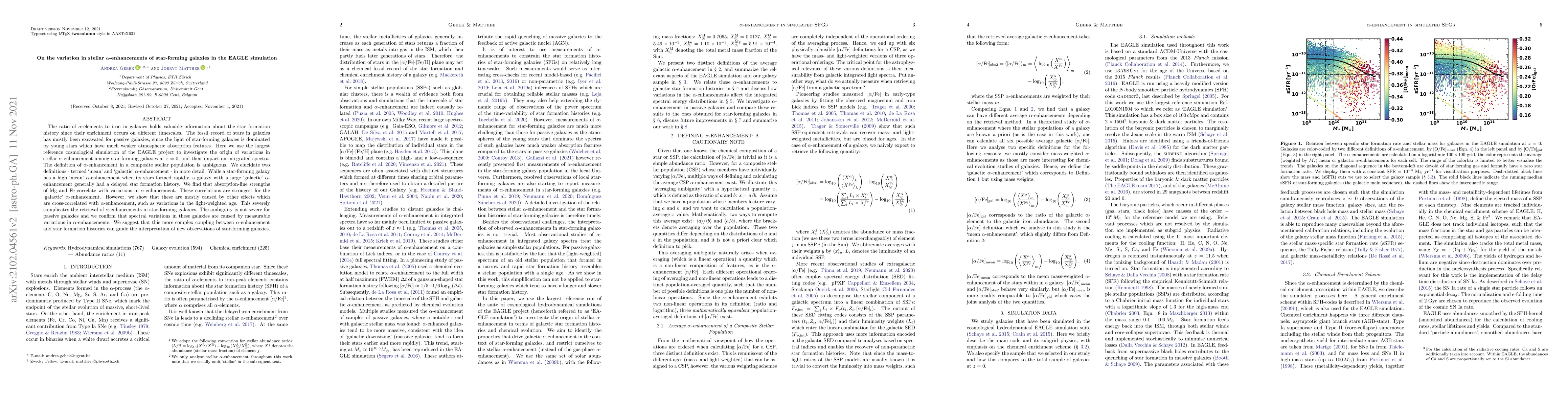 The ratio of $\alpha$-elements to iron in galaxies holds valuable information about the star formation history since their enrichment occurs on different timescales. The fossil record of stars in galaxies has mostly been excavated for passive galaxies, since the light of star-forming galaxies is dominated by young stars which have much weaker atmospheric absorption features. Here we use the largest reference cosmological simulation of the EAGLE project to investigate the origin of variations in stellar $\alpha$-enhancement among star-forming galaxies at $z=0$, and their impact on integrated spectra. The definition of $\alpha$-enhancement in a composite stellar population is ambiguous. We elucidate two definitions - termed `mean' and `galactic' $\alpha$-enhancement - in more detail. While a star-forming galaxy has a high `mean' $\alpha$-enhancement when its stars formed rapidly, a galaxy with a large `galactic' $\alpha$-enhancement generally had a delayed star formation history. We find that absorption-line strengths of Mg and Fe correlate with variations in $\alpha$-enhancement. These correlations are strongest for the `galactic' $\alpha$-enhancement. However, we show that these are mostly caused by other effects which are cross-correlated with $\alpha$-enhancement, such as variations in the light-weighted age. This severely complicates the retrieval of $\alpha$-enhancements in star-forming galaxies. The ambiguity is not severe for passive galaxies and we confirm that spectral variations in these galaxies are caused by measurable variations in $\alpha$-enhancements. We suggest that this more complex coupling between $\alpha$-enhancement and star formation histories can guide the interpretation of new observations of star-forming galaxies.
