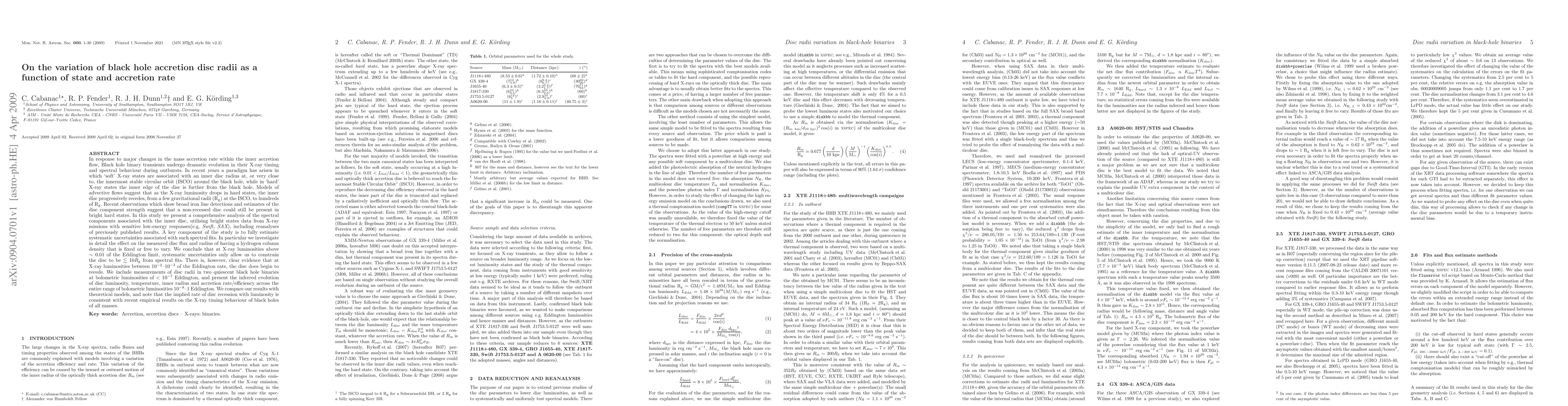 This study investigates the variation of black hole accretion disc radii in relation to different X-ray states and accretion rates, finding that discs are closer to the black hole in "soft" states and recede further in "hard" states as luminosity decreases. The analysis supports the theoretical model of disc recession correlating with luminosity changes.