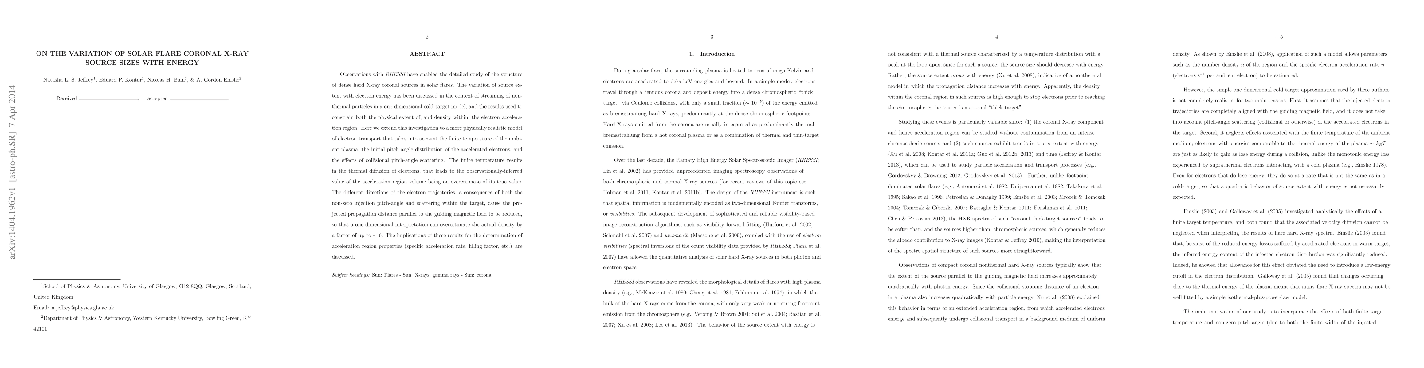 Observations with {\em RHESSI} have enabled the detailed study of the structure of dense hard X-ray coronal sources in solar flares. The variation of source extent with electron energy has been discussed in the context of streaming of non-thermal particles in a one-dimensional cold-target model, and the results used to constrain both the physical extent of, and density within, the electron acceleration region. Here we extend this investigation to a more physically realistic model of electron transport that takes into account the finite temperature of the ambient plasma, the initial pitch-angle distribution of the accelerated electrons, and the effects of collisional pitch-angle scattering. The finite temperature results in the thermal diffusion of electrons, that leads to the observationally-inferred value of the acceleration region volume being an overestimate of its true value. The different directions of the electron trajectories, a consequence of both the non-zero injection pitch-angle and scattering within the target, cause the projected propagation distance parallel to the guiding magnetic field to be reduced, so that a one-dimensional interpretation can overestimate the actual density by a factor of up to $\sim 6$. The implications of these results for the determination of acceleration region properties (specific acceleration rate, filling factor, etc.) are discussed.