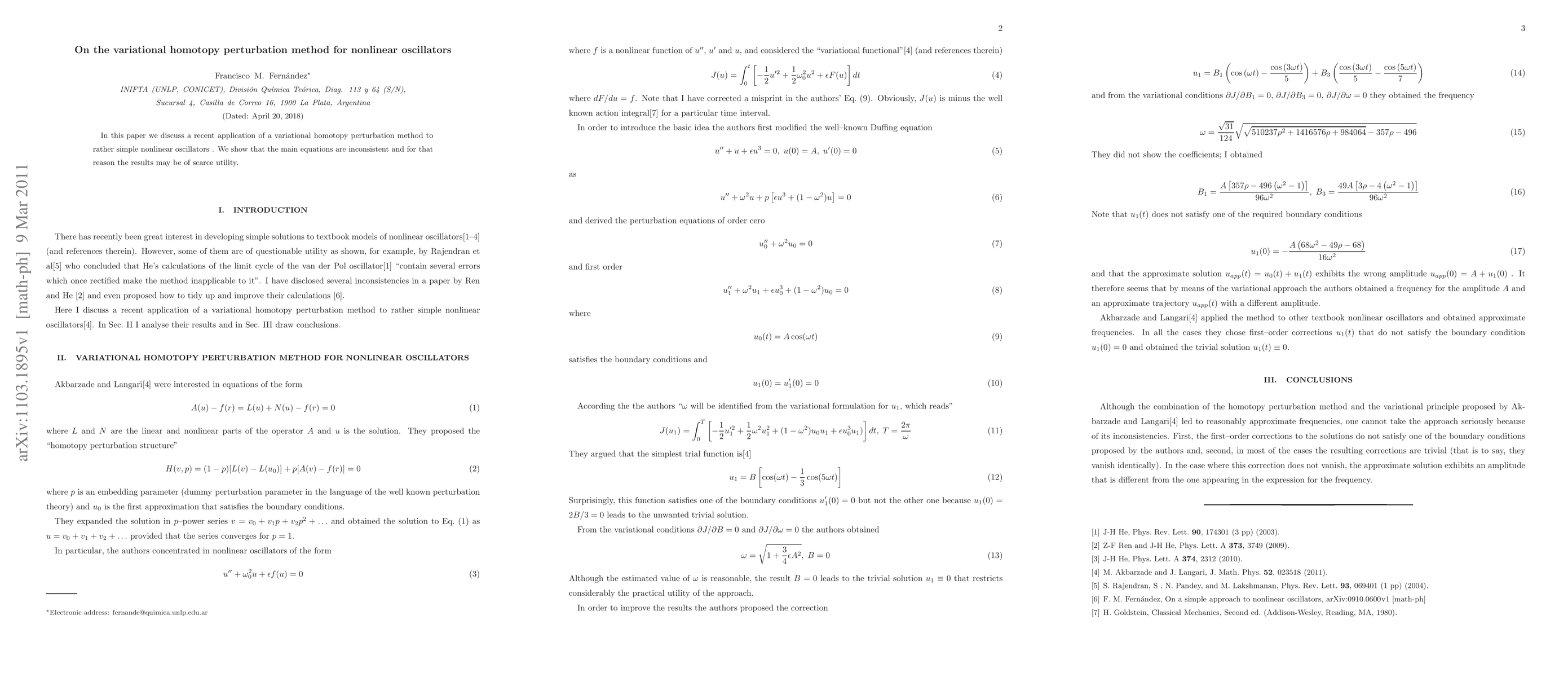 Summary: This paper applies the variational homotopy perturbation method to simple nonlinear oscillators, revealing that the main equations are inconsistent, thus limiting the practical utility of the results.