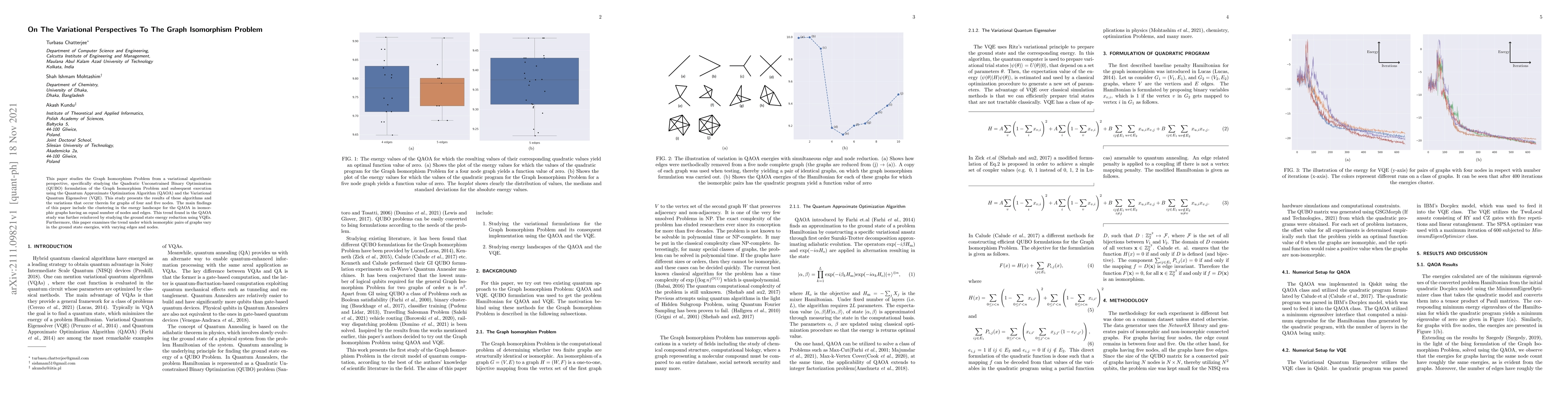 This paper studies the Graph Isomorphism Problem from a variational algorithmic perspective, specifically studying the Quadratic Unconstrained Binary Optimization (QUBO) formulation of the Graph Isomorphism Problem and subsequent execution using the Quantum Approximate Optimization Algorithm (QAOA) and the Variational Quantum Eigensolver (VQE). This study presents the results of these algorithms and the variations that occur therein for graphs of four and five nodes. The main findings of this paper include the clustering in the energy landscape for the QAOA in isomorphic graphs having an equal number of nodes and edges. This trend found in the QAOA study was further reinforced by studying the ground state energy reduction using VQEs. Furthermore, this paper examines the trend under which isomorphic pairs of graphs vary in the ground state energies, with varying edges and nodes.