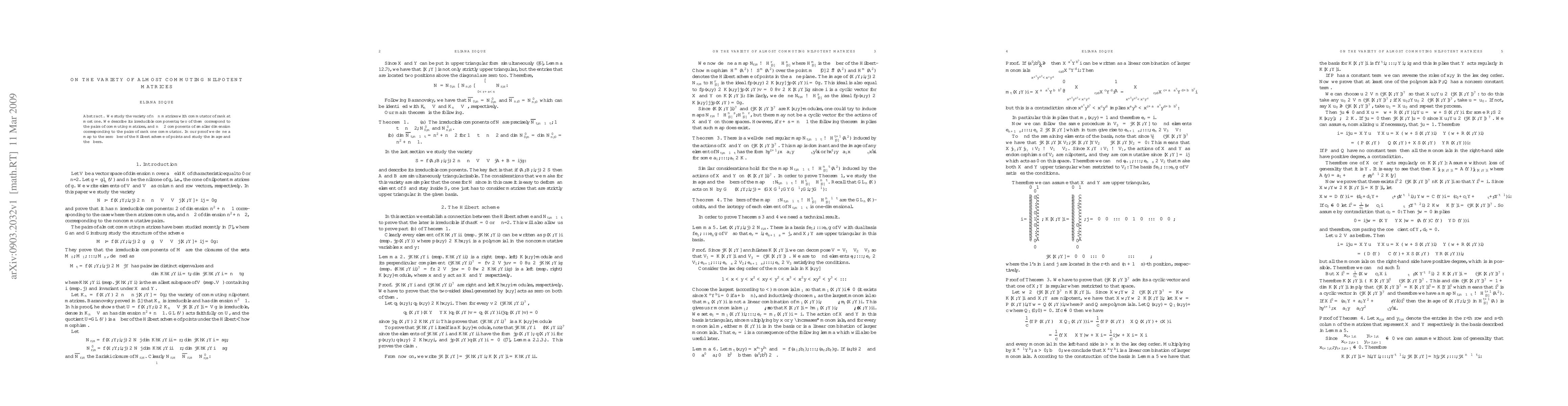 We study the variety of n by n matrices with commutator of rank at most one. We describe its irreducible components; two of them correspond to the pairs of commuting matrices, and n-2 components of smaller dimension corresponding to the pairs of rank one commutator. In our proof we define a map to the zero fiber of the Hilbert scheme of points and study the image and the fibers.