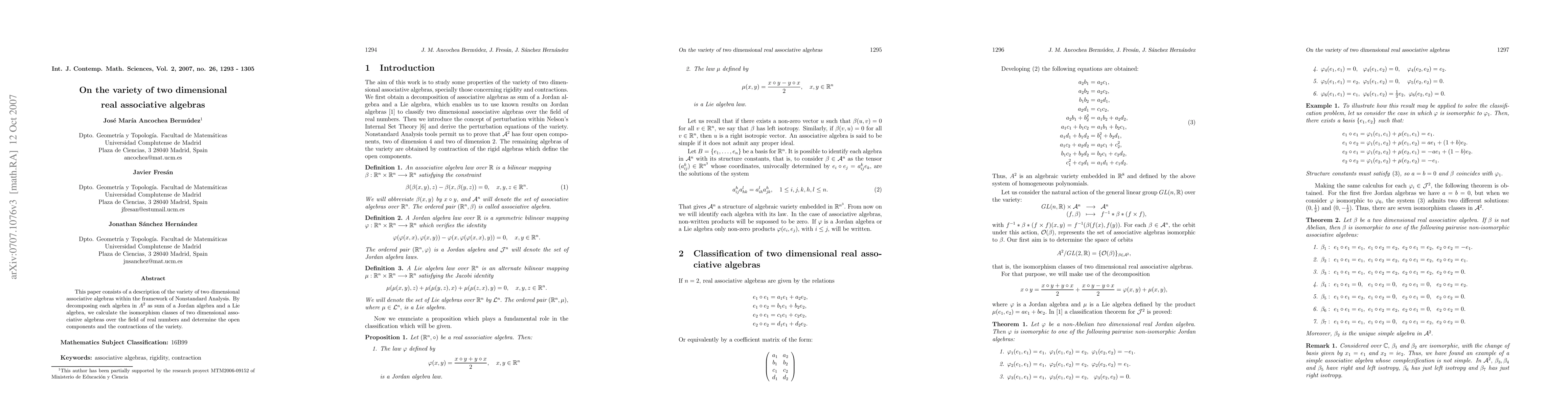 This paper explores two-dimensional real associative algebras using Nonstandard Analysis, finding that they can be decomposed into Jordan and Lie algebras, leading to a classification of their isomorphism classes.