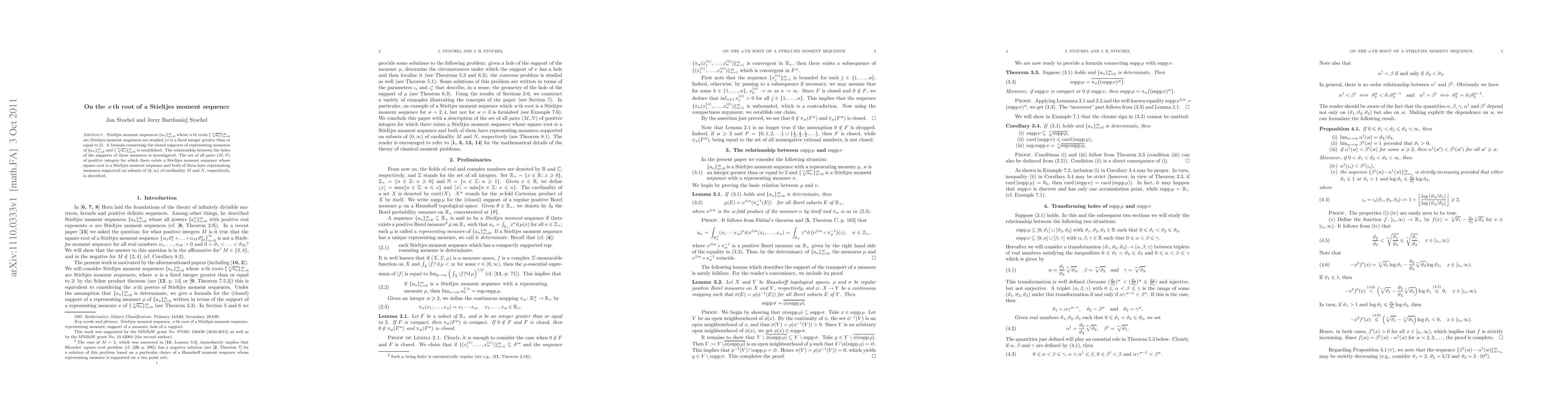 Researchers studied Stieltjes moment sequences whose square roots also have representing measures with closed supports on subsets of (0,ε) of specific cardinalities. A formula connecting the closed supports was established.