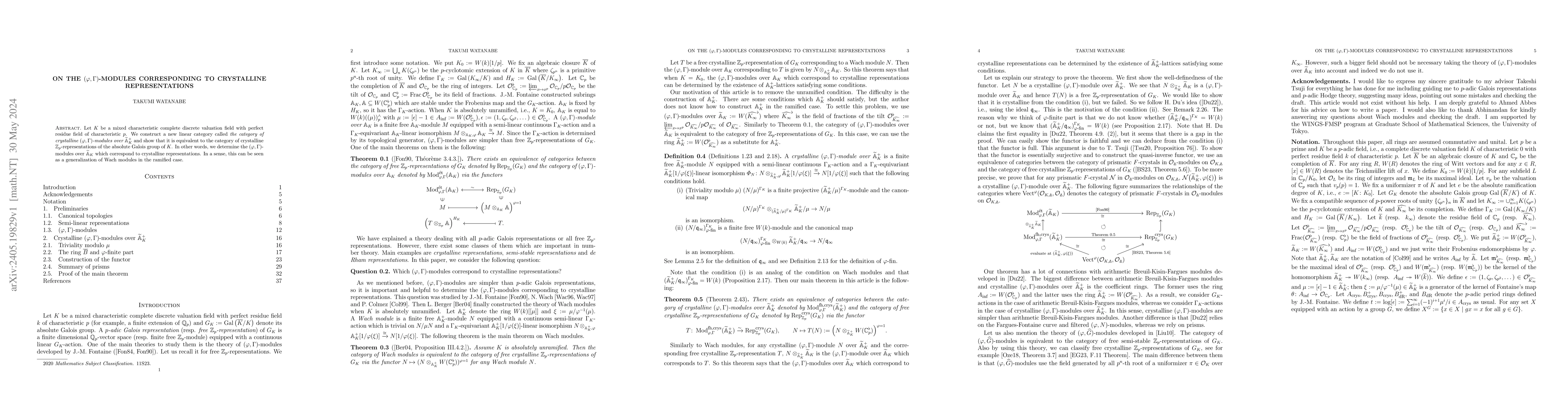 This paper constructs a new category of crystalline $(\varphi,\Gamma)$-modules over $\widetilde{\mathbb{A}}_K^{+}$ and proves its equivalence to the category of crystalline $\mathbb{Z}_p$-representations of the absolute Galois group of $K$. It generalizes Wach modules for the ramified case.