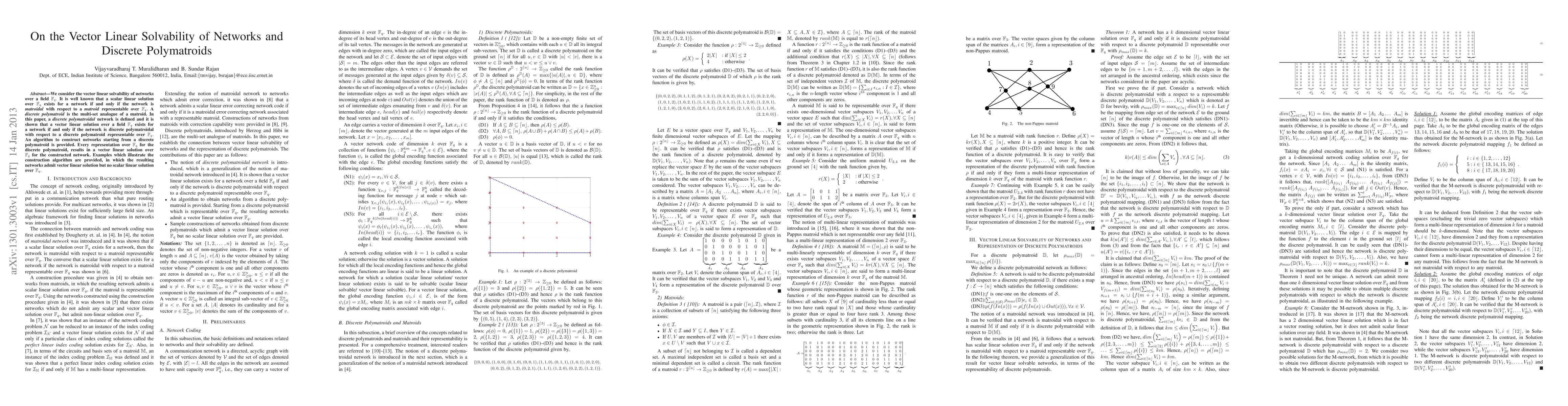 We consider the vector linear solvability of networks over a field $\mathbb{F}_q.$ It is well known that a scalar linear solution over $\mathbb{F}_q$ exists for a network if and only if the network is \textit{matroidal} with respect to a \textit{matroid} representable over $\mathbb{F}_q.$ A \textit{discrete polymatroid} is the multi-set analogue of a matroid. In this paper, a \textit{discrete polymatroidal} network is defined and it is shown that a vector linear solution over a field $\mathbb{F}_q$ exists for a network if and only if the network is discrete polymatroidal with respect to a discrete polymatroid representable over $\mathbb{F}_q.$ An algorithm to construct networks starting from a discrete polymatroid is provided. Every representation over $\mathbb{F}_q$ for the discrete polymatroid, results in a vector linear solution over $\mathbb{F}_q$ for the constructed network. Examples which illustrate the construction algorithm are provided, in which the resulting networks admit vector linear solution but no scalar linear solution over $\mathbb{F}_q.$