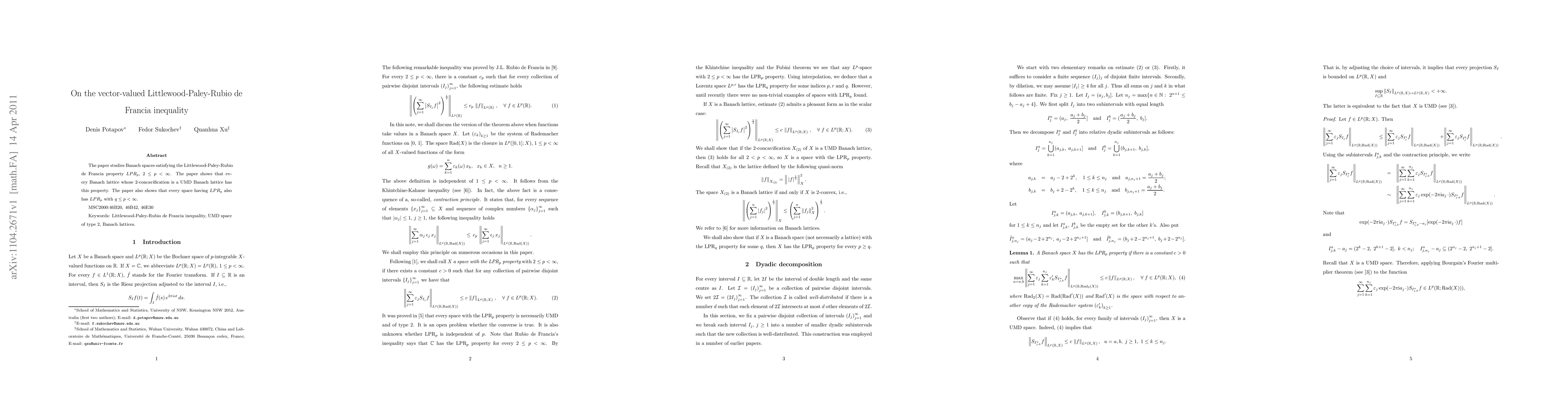 The paper investigates Banach spaces with the LPR_p property for 2 ≤ p < ∞, proving that 2-concavification of UMD Banach lattices retains this property. It also demonstrates that spaces with LPR_q inherit LPR_p for q ≤ p < ∞.