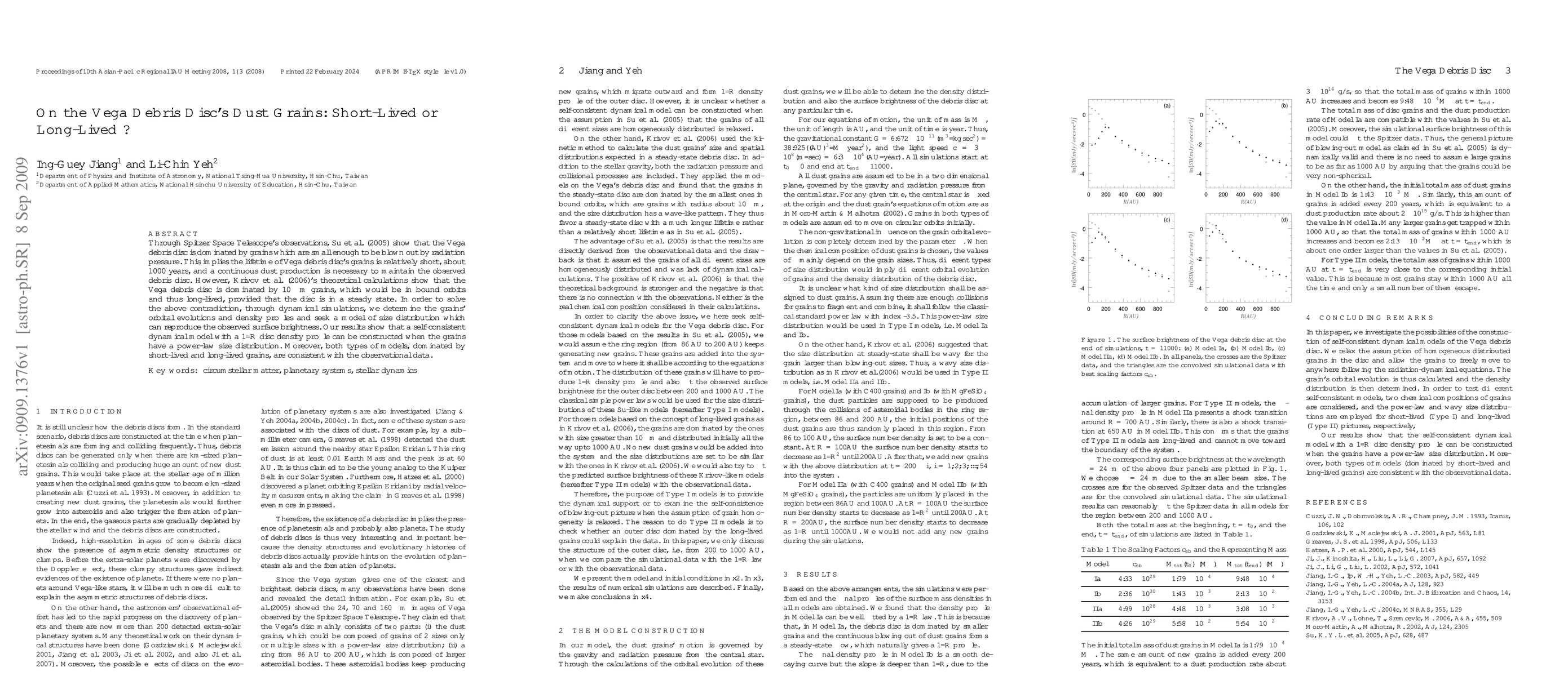 The Vega debris disc's grains, observed by Spitzer, are small enough to be short-lived due to radiation pressure, yet theoretical models suggest long-lived 10 micro-meter grains. Dynamical simulations reveal a self-consistent model with a 1/R density profile and a power-law size distribution, supporting both short-lived and long-lived grain models.