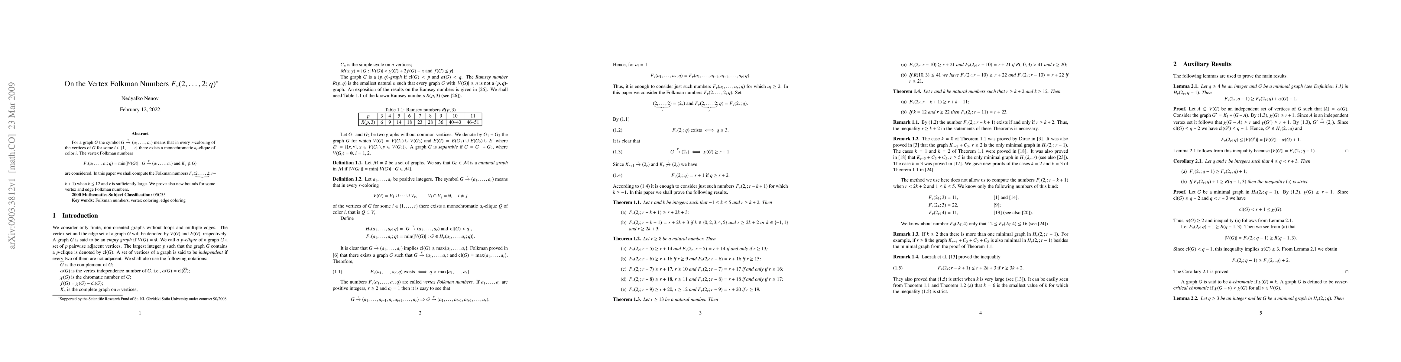 For a graph $G$ the symbol $G\tov(a_1,...,a_r)$ means that in every $r$-coloring of the vertices of $G$ for some $i\in\{1,...,r\}$ there exists a monochromatic $a_i$-clique of color $i$. The vertex Folkman numbers \[ \FN=\min\{|V(G)|:G\tov(a_1,...,a_r)\text{and}K_q\nsubseteqq G\} \] are considered. In this paper we shall compute the Folkman numbers $F_v(\underbrace{2,...,2}_r;r-k+1)$ when $k\le 12$ and $r$ is sufficiently large. We prove also new bounds for some vertex and edge Folkman numbers.