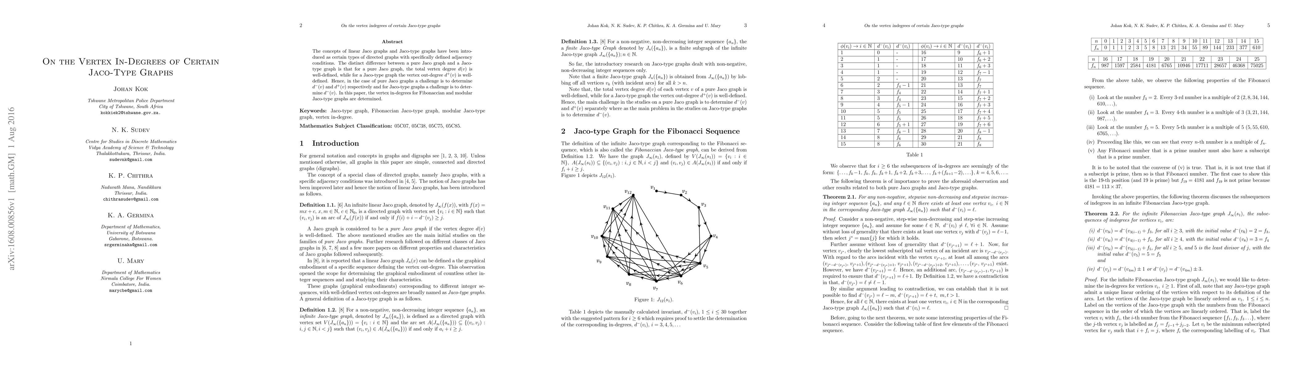 The main technical contribution is the development of a general proof for the in-degree sequence of vertices in an infinite modular Jaco-type graph.