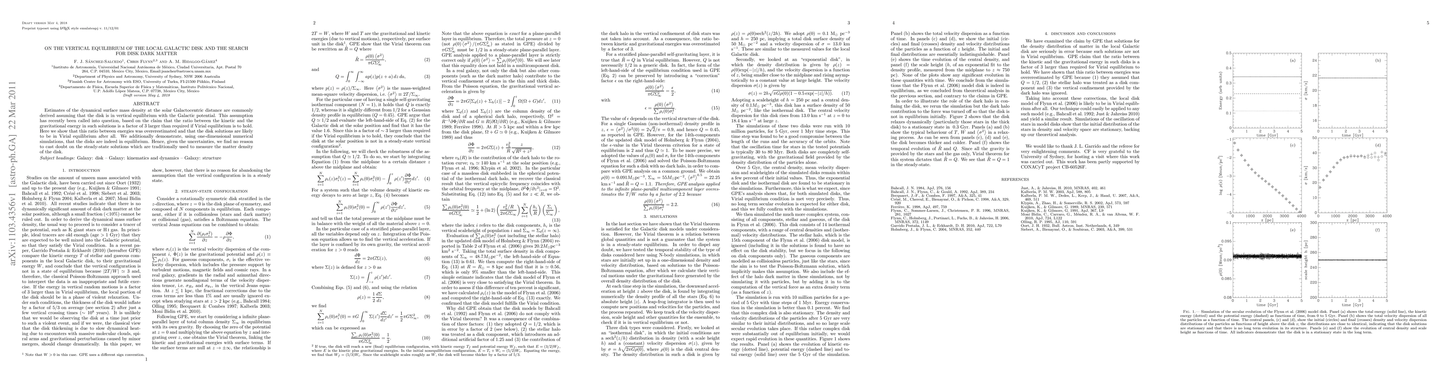 Researchers found that disk solutions for the Milky Way galaxy are likely in Virial equilibrium, contrary to previous claims suggesting a vertical equilibrium with disk dark matter.